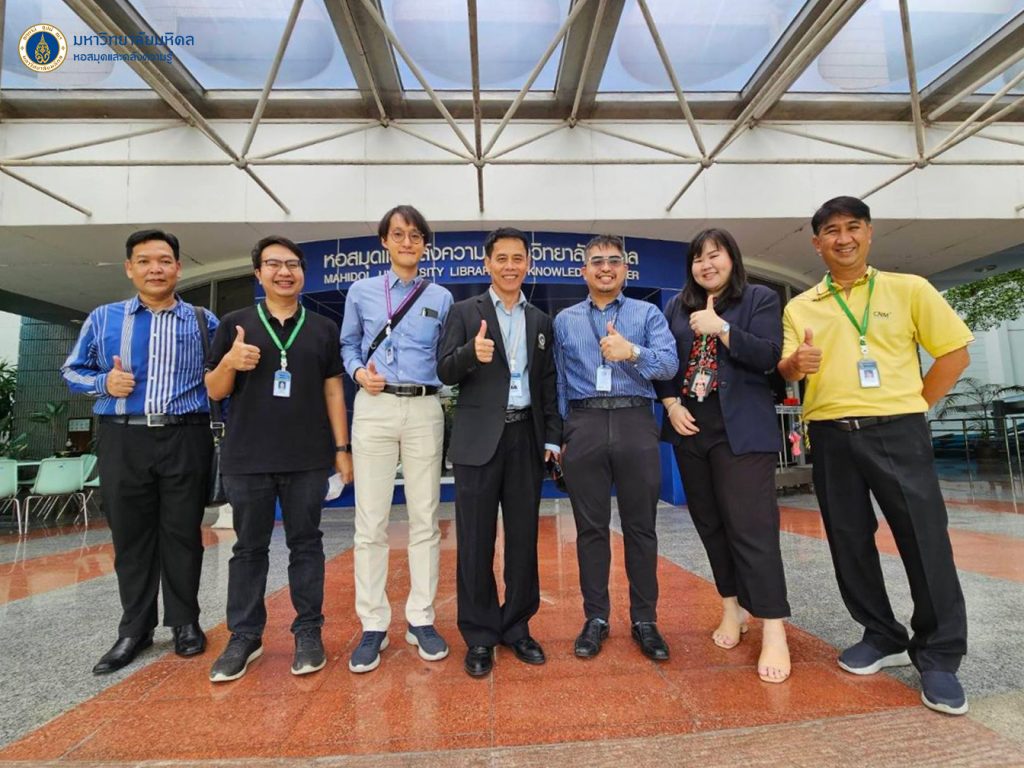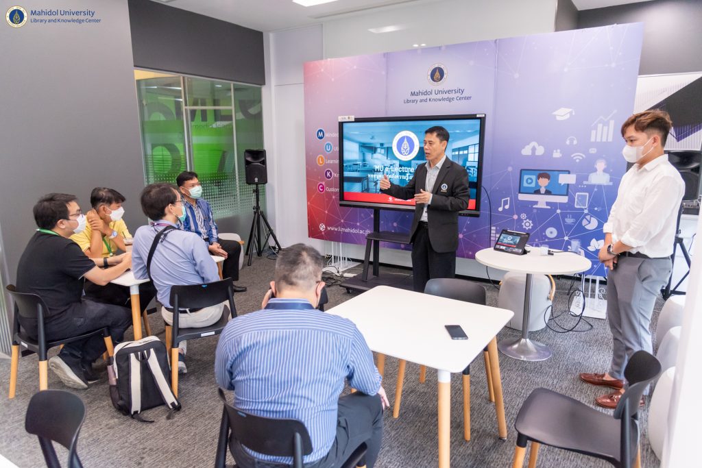 หอสมุดและคลังความรู้มหาวิทยาลัยมหิดล โดย ดร.อภิภู สิทธิภูมิมงคล รองผู้อำนวยการฝ่ายเทคโนโลยีการศึกษาและพันธกิจพิเศษ ให้การต้อนรับ ผู้ช่วยศาสตราจารย์ นพ. สิทธาคม ผู้สันติ รองผู้อำนวยการสถาบันการแพทย์จักรีนฤบดินทร์ คณะแพทยศาสตร์โรงพยาบาลรามาธิบดี มหาวิทยาลัยมหิดล พร้อมด้วยคณะผู้บริหารและบุคลากร เนื่องในโอกาสเข้าศึกษาดูงานระบบ MU e-Lecture ของงานเทคโนโลยีการศึกษา ฝ่ายเทคโนโลยีสารสนเทศห้องสมุดและเทคโนโลยีการศึกษา หอสมุดและคลังความรู้มหาวิทยาลัยมหิดล เมื่อวันจันทร์ที่ 19 มิถุนายน 2566 ที่ผ่านมา ณ บริเวณห้อง SCB Investment Lab ชั้น 1 อาคารหอสมุดและคลังความรู้มหาวิทยาลัยมหิดล โดยมีวัตถุประสงค์เพื่อศึกษาและพัฒนาระบบจัดเก็บสื่อการเรียนการสอนรูปแบบออนไลน์ของสถาบันการแพทย์จักรีนฤบดินทร์ฯ ต่อไปในอนาคต