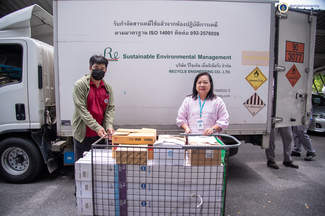 งานภูมิทัศน์และสิ่งแวดล้อม กองกายภาพและสิ่งแวดล้อม มหาวิทยาลัยมหิดล เพื่อเป็นไปตามมาตรฐานและลดการปนเปื้อนสู่สิ่งแวดล้อม