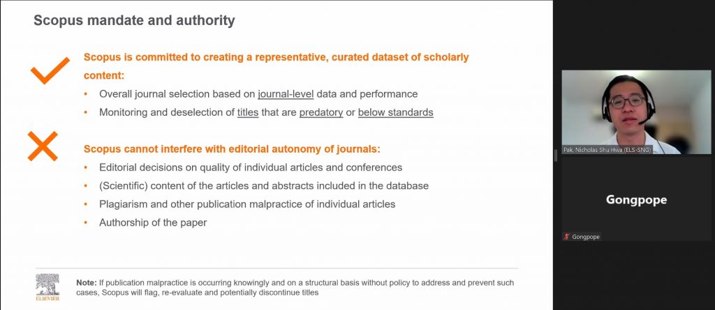 งานพัฒนาทรัพยากรวารสาร หอสมุดและคลังความรู้มหาวิทยาลัยมหิดล ได้จัดการบรรยายให้ความรู้ เรื่อง “การแนะนำวิธีเลือกวารสารเพื่อการตีพิมพ์” ให้กับนักศึกษา อาจารย์และบุคลากรของมหาวิทยาลัยมหิดล โดย Mr. Nicholas Pak ตำแหน่งที่ปรึกษาลูกค้าระดับอาวุโส จากสำนักพิมพ์ Elsevier เป็นวิทยากรบรรยาย ผ่านโปรแกรม Zoom meeting เมื่อวันจันทร์ที่ 20 มิถุนายน 2565 ที่ผ่านมา