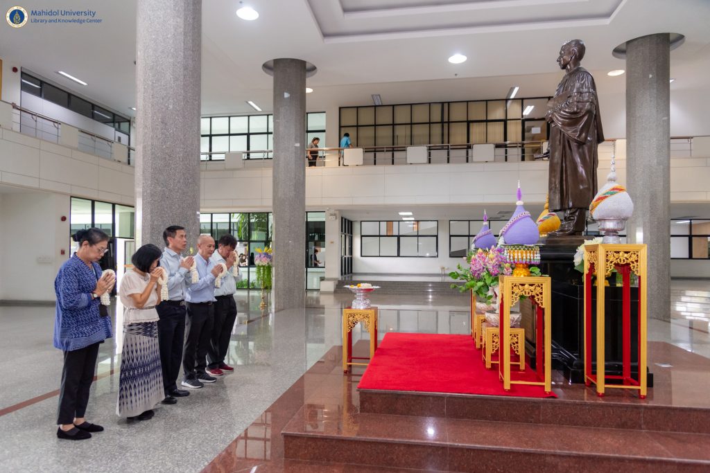 หอสมุดและคลังความรู้มหาวิทยาลัยมหิดล โดย คุณอังคณา อินทรพาณิชย์ รองผู้อำนวยการฝ่ายบริหารและพัฒนาคุณภาพห้องสมุด พร้อมด้วยบุคลากรผู้เกษียณอายุราชการของหอสมุดและคลังความรู้ฯ เดินทางไปสักการะสิ่งศักดิ์สิทธิ์ประจำมหาวิทยาลัยมหิดล ได้แก่ พระพุทธมหิดลมงคลปัญญาญาณ ศาลพ่อขุนทุ่ง และพระราชานุสาวรีย์ สมเด็จพระมหิตลาธิเบศร อดุลยเดชวิกรม พระบรมราชชนก เพื่อความเป็นสิริมงคลแก่ผู้เกษียณฯ เมื่อวันพุธที่ 20 กันยายน 2566 ที่ผ่านมา
