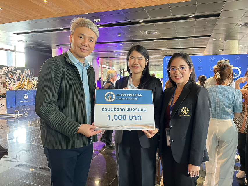 ผู้แทนหอสมุดและคลังความรู้ฯ ร่วมแสดงความยินดีเนื่องในโอกาสครบรอบ 30 ปี วิทยาลัยดุริยางคศิลป์ มหาวิทยาลัยมหิดล โดยมอบเงินบริจาคจำนวน 1,000 บาท