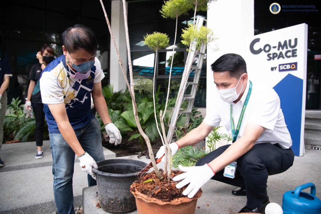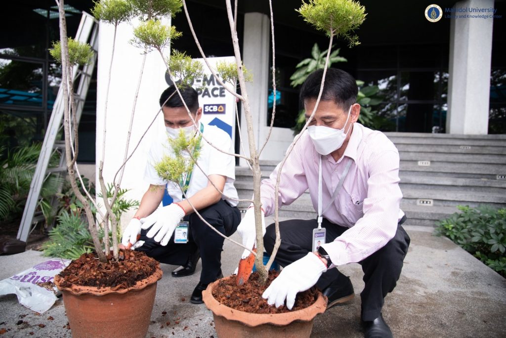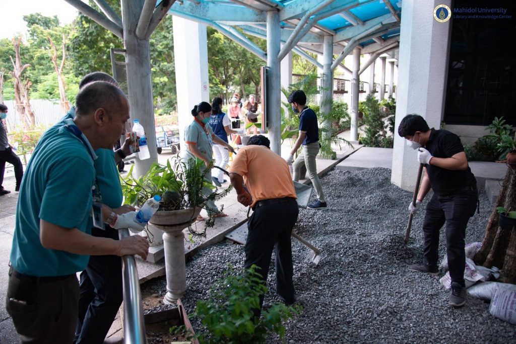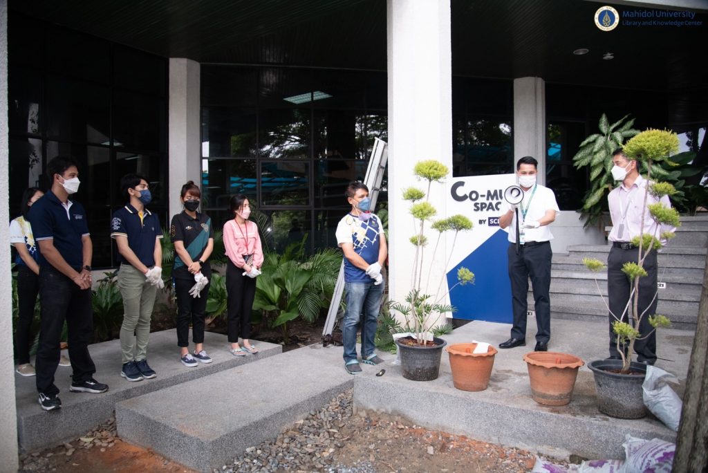 หอสมุดและคลังความรู้มหาวิทยาลัยมหิดล โดย ผู้ช่วยศาสตราจารย์ ดร.นพพล เผ่าสวัสดิ์ ผู้อำนวยการหอสมุดและคลังความรู้ฯ เป็นประธานกล่าวเปิดโครงการสวนมุมสวยปี 7 และได้ให้เกียรติปลูกต้นไม้เพื่อเพิ่มพื้นที่สีเขียวให้กับหอสมุดและคลังความรู้ฯ ในการนี้ ดร.อภิภู สิทธิภูมิมงคล รองผู้อำนวยการฝ่ายเทคโนโลยีการศึกษาและพันธกิจพิเศษ ได้กล่าวถึงวัตถุประสงค์ และความสำคัญของโครงการฯ เพื่อเป็นการตอบรับกับนโยบายสิ่งแวดล้อมที่เกี่ยวข้องของมหาวิทยาลัยมหิดล และของหอสมุดและคลังความรู้ฯ เช่น Sustainable Development Goal, Mahidol Library Go Green Office เป็นต้น ณ บริเวณสวนด้านหน้า Co-Mu Share Learning Space หอสมุดและคลังความรู้ฯ เมื่อวันพฤหัสบดีที่ 21 กรกฎาคม 2565 ที่ผ่านมา โดยได้รับความร่วมมือจากผู้แทนบุคลากรของหอสมุดและคลังความรู้ฯ ทุกส่วนงานร่วมกันตกแต่งสวนให้มีความสวยงามและมุ่งเน้นการรักษาสิ่งแวดล้อม ส่งผลให้หอสมุดและคลังความรู้ฯ มุ่งสู่การเป็นห้องสมุดสีเขียว (Green Library) แบบยั่งยืนต่อไป