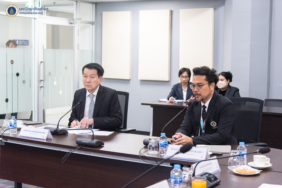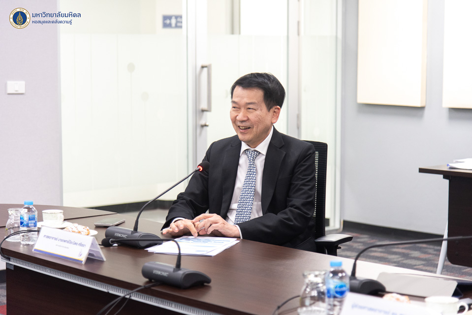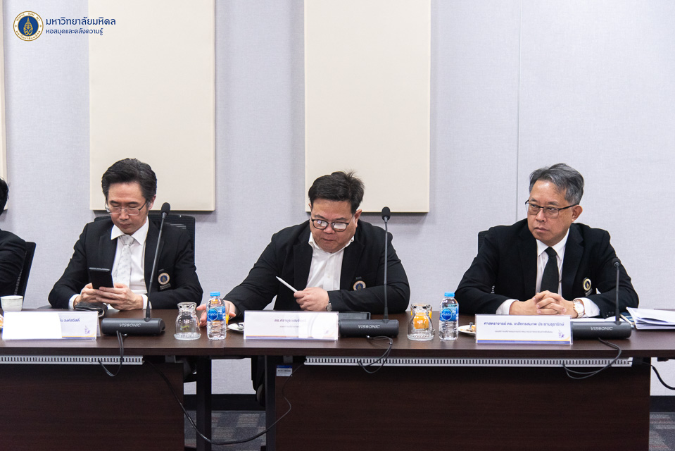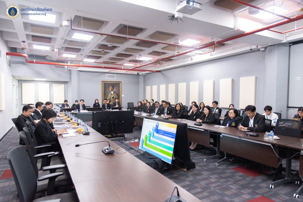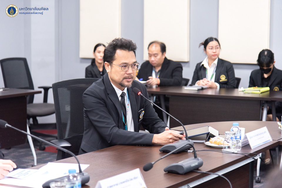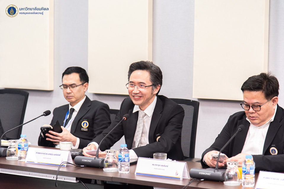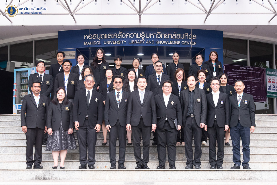 ศาสตราจารย์ นายแพทย์ปิยะมิตร ศรีธรา อธิการบดีมหาวิทยาลัยมหิดล พร้อมด้วยคณะผู้บริหารมหาวิทยาลัยมหิดล ร่วมติดตามผลการดำเนินงานตามข้อตกลงการปฏิบัติงานของส่วนงาน (PA-Visit) ประจำปีงบประมาณ 2569 ของหอสมุดและคลังความรู้มหาวิทยาลัยมหิดล โดยมี ผู้ช่วยศาสตราจารย์ ดร.สราวุธ เวชกิจ ผู้อำนวยการหอสมุดและคลังความรู้ฯ รายงานผลการดำเนินงานตามข้อตกลงการปฏิบัติงานของหอสมุดและคลังความรู้ฯ (PA Visit) พร้อมนำเสนอผลการดำเนินงานที่โดดเด่นในรอบปีงบประมาณที่ผ่านมา และแผนการดำเนินงานที่สำคัญ พร้อมรับฟังข้อเสนอแนะในการดำเนินงาน ประจำปีงบประมาณ 2569 โดยมีคณะผู้บริหาร และบุคลากรหอสมุดและคลังความรู้ฯ เข้าร่วมรับฟังการนำเสนอในครั้งนี้ด้วย ในวันศุกร์ที่ 21 พฤศจิกายน พ.ศ. 2568 ณ ห้องประชุม 2 ชั้น 3 อาคารหอสมุดและคลังความรู้ฯ ศาลายา โดยคณะผู้บริหารมหาวิทยาลัยมหิดล ได้ฝากข้อเสนอแนะโอกาสในการพัฒนาของหอสมุดและคลังความรู้ฯ ให้ดำเนินการ ซึ่งจะทำให้เป็นองค์กรแห่งการบริการและแหล่งคลังความรู้ สอดคล้องกับการมุ่งสู่แนวทาง Real World Impact ที่พร้อมรับมือกับความเปลี่ยนแปลง และยกระดับการพัฒนามหาวิทยาลัยในระดับสากลต่อไป