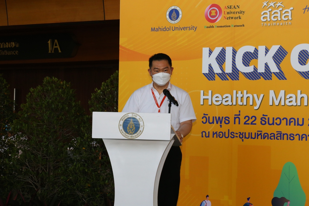 หอสมุดและคลังความรู้มหาวิทยาลัยมหิดล โดย ดร.อภิภู สิทธิภูมิมงคล รองผู้อำนวยการฝ่ายเทคโนโลยีการศึกษาและพันธกิจพิเศษได้เข้าร่วมพิธีเปิดกิจกรรม KICKOFF DAY HEALTHY MAHIDOL : “มหิดลสุขภาพดีวิถีใหม่” เพื่อการพัฒนาศักยภาพนักศึกษา อาจารย์ รวมถึงบุคลากรสายสนับสนุนให้มีสุขภาพดีวิถีใหม่ ภายใต้กิจกรรมขับเคลื่อนงานสร้างเสริมสุขภาพในมหาวิทยาลัยมหิดล ในวันที่ 22 ธันวาคม 2564 ณ หอประชุมมหิดลสิทธาคาร มหาวิทยาลัยมหิดล ศาลายาและกิจกรรม KICKOFF DAY HEALTHY MAHIDOL ได้รับเกียรติจากศาสตราจารย์ นายแพทย์บรรจง มไหสวริยะ อธิการบดีมหาวิทยาลัยมหิดล เป็นประธาน และมี ดร.ชลธิศ ธีระฐิติ ผู้อำนวยการบริหาร สำนักงานเลขานุการเครือข่ายมหาวิทยาลัยอาเซียน นายแพทย์วิวัฒน์ โรจนพิทยากร ที่ปรึกษาคณะทำงานของมหาวิทยาลัยมหิดล ในเครือข่าย AUN-HPN ร่วมพิธีเปิดกิจกรรมฯ โดยมี รองศาสตราจารย์ ดร. นายแพทย์ภูดิท เตชาติวัฒน์ ผู้อำนวยการสถาบันพัฒนาสุขภาพอาเซียน เลขาธิการเครือข่ายมหาวิทยาลัยอาเซียนด้านการสร้างเสริมสุขภาพ (AUN-HPN) เป็นประธานคณะทำงานของมหาวิทยาลัยมหิดล (Working Group Committee) ในเครือข่าย AUN-HPN กล่าวรายงานวัตถุประสงค์การจัดงาน