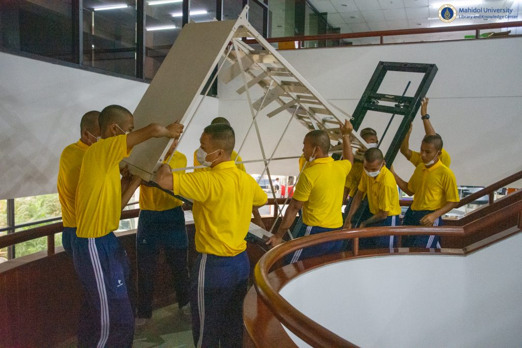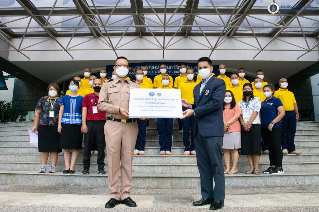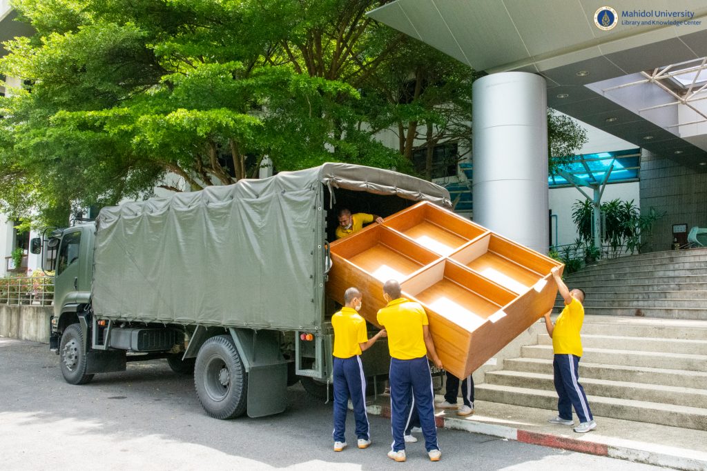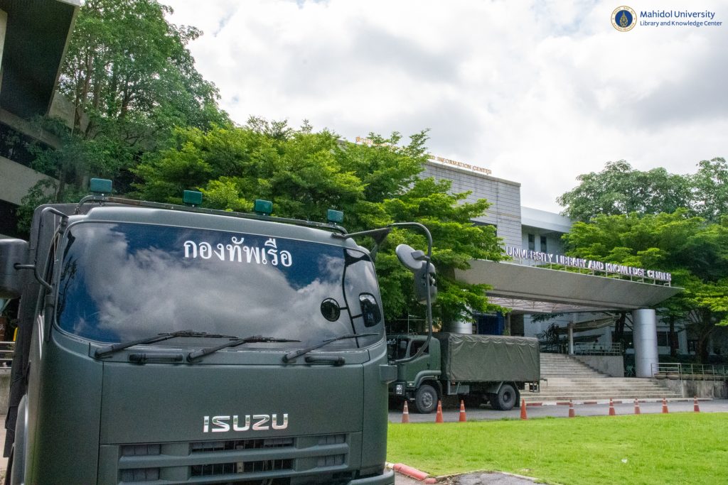 หอสมุดและคลังความรู้มหาวิทยาลัยมหิดล โดย ผู้ช่วยศาสตราจารย์ ดร.นพพล เผ่าสวัสดิ์ ผู้อำนวยการหอสมุดและคลังความรู้ฯ เป็นประธานส่งมอบครุภัณฑ์บริจาค ให้กับกองดุริยางค์ทหารเรือ ฐานทัพเรือกรุงเทพ โดย เรือเอก ชูศักดิ์ ทองสิมา ตำแหน่ง หัวหน้าหมวดดุริยางค์สากล แผนกดนตรี กองดุริยางค์ทหารเรือ ฐานทัพเรือกรุงเทพ พร้อมกำลังทหารกองดุริยางค์ฯ จำนวน 20 นาย รับมอบครุภัณฑ์สำนักงาน ที่หมดความจำเป็นใช้งาน จำนวน 15 รายการ เมื่อวันศุกร์ที่ 22 กรกฎาคม 2565 ที่ผ่านมา ทั้งนี้เพื่อนำไปใช้ประโยชน์ในการปฏิบัติราชการของกองดุริยางค์ทหารเรือฯ ต่อไป