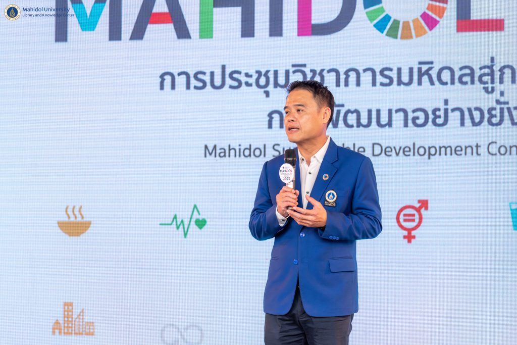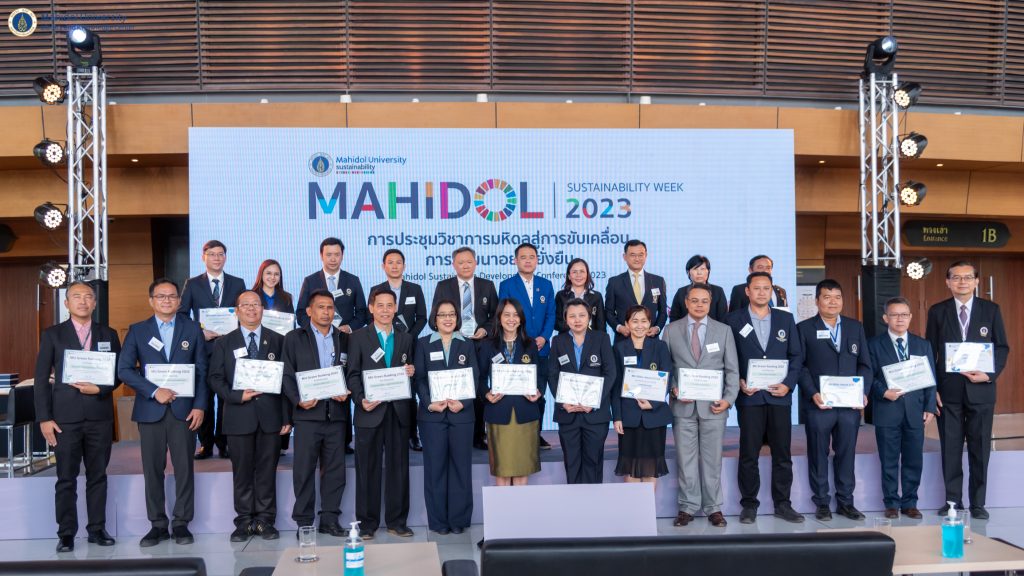 มหาวิทยาลัยมหิดล โดย รองศาสตราจารย์ ดร.กิติกร จามรดุสิต รองอธิการบดีฝ่ายสิ่งแวดล้อมและการพัฒนาอย่างยั่งยืน มหาวิทยาลัยมหิดล เป็นประธานเปิดการประชุมวิชาการมหิดลสู่การขับเคลื่อนการพัฒนาอย่างยั่งยืน 2566 (Mahidol Sustainable Week 2023) เมื่อวันพุธที่ 23 สิงหาคม 2566 ที่ผ่านมา ณ หอประชุมมหิดลสิทธาคาร มหาวิทยาลัยมหิดล ศาลายา เพื่อเสริมสร้างความรู้ความเข้าใจ และพัฒนาต่อยอดความคิดผ่านการแลกเปลี่ยนองค์ความรู้ที่ทุกคนสามารถมีส่วนร่วม ในการสนับสนุนเป้าหมายการพัฒนาที่ยั่งยืน พร้อมมอบรางวัล MU SDGs AWARD 2023 และ MU GREEN RANKING 2022 ให้แก่ส่วนงานที่ส่งเสริมการดำเนินงานในการขับเคลื่อนการบริหารจัดการทรัพยากรภายในหน่วยงานให้บรรลุวัตถุประสงค์การพัฒนาอย่างยั่งยืน