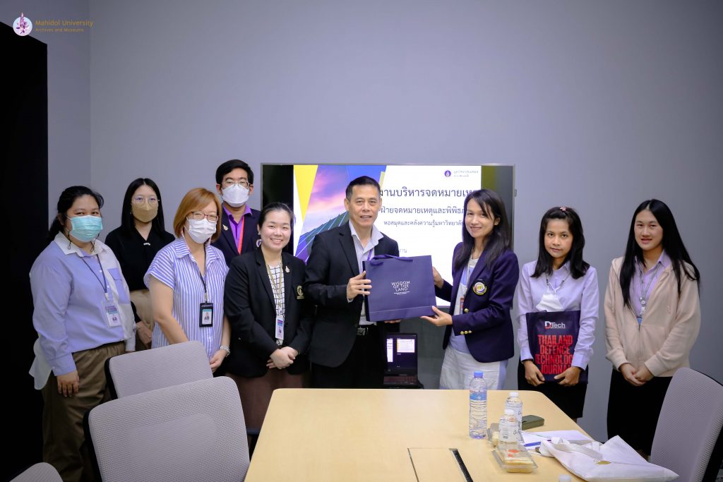 วันศุกร์ที่ 23 กุมภาพันธ์ พ.ศ. 2567 ฝ่ายจดหมายเหตุและพิพิธภัณฑ์ หอสมุดและคลังความรู้มหาวิทยาลัยมหิดล ให้การต้อนรับคณะผู้บริหารและเจ้าหน้าที่จากสถาบันเทคโนโลยีป้องกันประเทศ เข้าศึกษาดูงานด้านการบริหารจัดการจดหมายเหตุและพิพิธภัณฑ์ ณ หอสมุดและคลังความรู้มหาวิทยาลัยมหิดล พร้อมทั้ง เยี่ยมชมหอพระราชประวัติสมเด็จพระบรมราชชนก และนิทรรศการ Wisdom of the Land ณ ศูนย์การเรียนรู้มหิดล