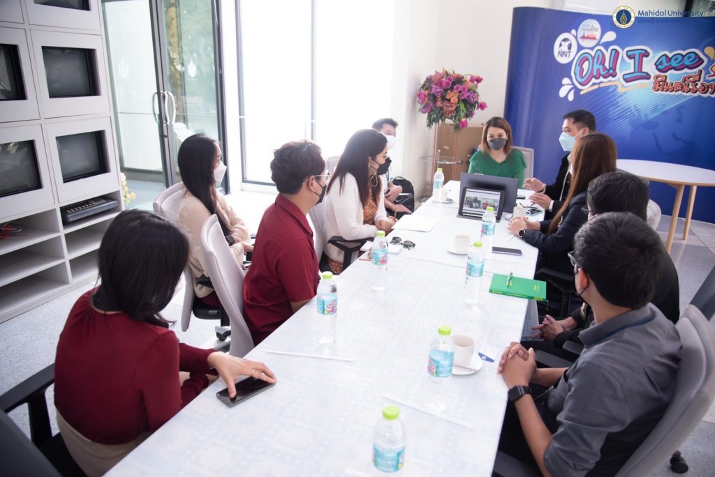 หอสมุดและคลังความรู้มหาวิทยาลัยมหิดล โดยดร.อภิภู สิทธิภูมิมงคล รองผู้อำนวยการฝ่ายเทคโนโลยีการศึกษาและพันธกิจพิเศษ และ The Author Production Team เข้าพบ คุณศิริลักษณ์ รัตนวโรกาส ผู้อำนวยการส่วนผลิตรายการภาคภาษาอังกฤษ สำนักข่าว กรมประชาสัมพันธ์ เมื่อวันที่ 24 ธันวาคม 2564 เพื่อหารือ แนวทางความร่วมมือในการเพิ่มช่องทางการเผยแพร่ รายการ The Author ทาง NBT WORLD และ Platform ต่างๆ ของ Social Media โดยได้รับการต้อนรับและความร่วมมือจากทาง NBT WORLD ในการวางแผนและการเผยแพร่รายการ The Author เป็นอย่างดี รวมถึงการวางแผนความร่วมมือในการผลิตรายการ The Author ร่วมกันในอนาคตอีกด้วย
