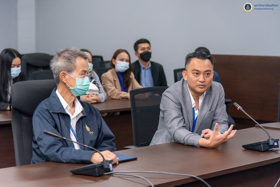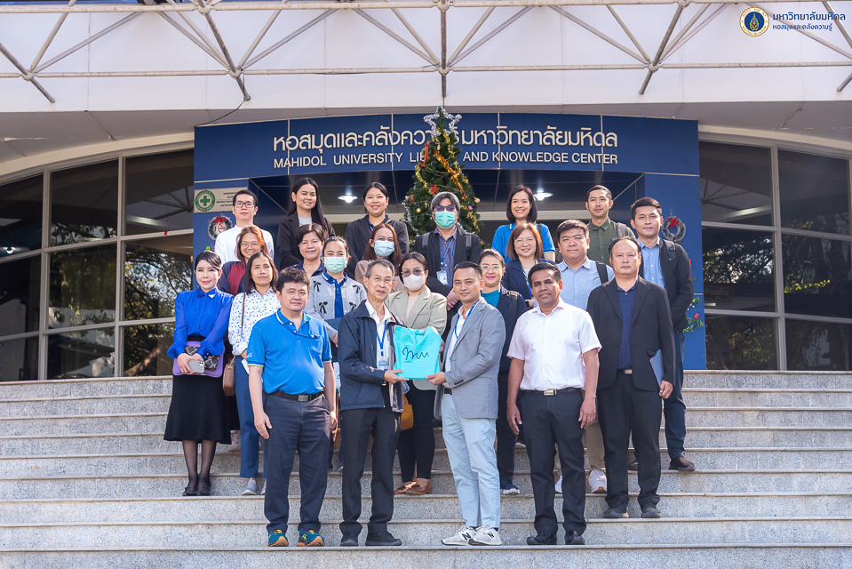 หอสมุดและคลังความรู้มหาวิทยาลัยมหิดล โดย ผู้ช่วยศาสตราจารย์ ดร.ทวีศักดิ์ สมานชื่น รองผู้อำนวยการฝ่ายเทคโนโลยีดิจิทัล และอาจารย์ ดร.เอกชัย วารินศิริรักษ์ รองผู้อำนวยการฝ่ายนวัตกรรมบริการห้องสมุด ให้การต้อนรับคณะผู้ศึกษาดูงานจาก บริษัท อาร์เอฟเอส จำกัด นำโดย นพ.สุกิจ แย้มวงษ์ Managing Director บริษัท อาร์เอฟเอส จำกัด ในโอกาสเข้าเยี่ยมชมงานบริการต่าง ๆ และการจัดการของหอสมุดและคลังความรู้มหาวิทยาลัยมหิดล พร้อมทั้งหารือจัดทำบันทึกข้อตกลงความร่วมมือทางด้านพลังงานสำหรับเครื่องปรับอากาศในอาคาร ในวันอังคารที่ 24 ธันวาคม พ.ศ. 2567 ณ อาคารหอสมุดและคลังความรู้ฯ ศาลายา
