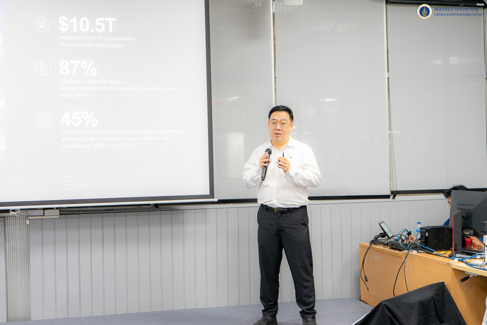 หอสมุดและคลังความรู้มหาวิทยาลัยมหิดล จัดกิจกรรม “Lenovo AI Christmas Eve 2025 x YAMPMUSIC @ Mahidol Library” ระหว่างวันที่ 23–24 ธันวาคม พ.ศ. 2568 ณ อาคารหอสมุดและคลังความรู้ มหาวิทยาลัยมหิดล ศาลายา โดยภายในงานประกอบด้วยกิจกรรมสำคัญ ได้แก่ กิจกรรม “Lenovo University Roadshow 2025” และ “การสัมมนาวิชาการเพื่อแลกเปลี่ยนองค์ความรู้ด้านเทคโนโลยีปัญญาประดิษฐ์ (AI)” ซึ่งได้รับการสนับสนุนจากบริษัท เลอโนโว่ (ประเทศไทย) จำกัด นอกจากนี้ ยังมีการแสดงดนตรีในกิจกรรม “Christmas Concert YAMP x MULI” โดยนักเรียนจากวิทยาลัยดุริยางคศิลป์ มหาวิทยาลัยมหิดล จำนวน 250 คน และกิจกรรม “Christmas Eve VR Landmark Zone: Santa Simulator & Maestro” เพื่อสร้างประสบการณ์การเรียนรู้ผ่านเทคโนโลยีเสมือนจริง ในโอกาสนี้ได้รับเกียรติจาก ผู้ช่วยศาสตราจารย์ ดร.สราวุธ เวชกิจ ผู้อำนวยการหอสมุดและคลังความรู้ฯ พร้อมด้วยอาจารย์ ดร.เอกชัย วารินศิริรักษ์ รองผู้อำนวยการฝ่ายนวัตกรรมบริการห้องสมุด ร่วมให้การต้อนรับ และผู้ช่วยศาสตราจารย์ ดร.ทวีศักดิ์ สมานชื่น รองผู้อำนวยการฝ่ายเทคโนโลยีดิจิทัล ร่วมเป็นวิทยากรในการเสวนาวิชาการครั้งนี้ โดยกิจกรรมดังกล่าวมีวัตถุประสงค์เพื่อสนับสนุนและส่งเสริมให้นักศึกษา อาจารย์ และบุคลากรมหาวิทยาลัยมหิดล ได้มีโอกาสแลกเปลี่ยนเรียนรู้ เสริมสร้างความเข้าใจด้านเทคโนโลยีปัญญาประดิษฐ์และนวัตกรรมที่ทันสมัย ตลอดจนส่งเสริมการใช้พื้นที่หอสมุดและคลังความรู้ฯ ให้เป็นแหล่งเรียนรู้และพื้นที่สร้างสรรค์ของมหาวิทยาลัยมหิดลอย่างมีประสิทธิภาพ