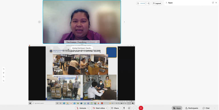 วันพฤหัสบดีที่ 24 กุมภาพันธ์ 2565 คุณปัญจวัลย์ ชาวดง นักจดหมายเหตุ งานบริหารจดหมายเหตุ ฝ่ายจดหมายเหตุและพิพิธภัณฑ์ หอสมุดและคลังความรู้มหาวิทยาลัยมหิดล ได้รับเชิญเป็นวิทยากรบรรยายให้ความรู้ เรื่อง “แนวทางการประเมินคุณค่าเอกสารจดหมายเหตุแก่บุคลากรวิทยาเขตกาญจนบุรี มหาวิทยาลัยมหิดล” ผ่านโปรแกรม Webex เวลา 10.00 -12.00 น.