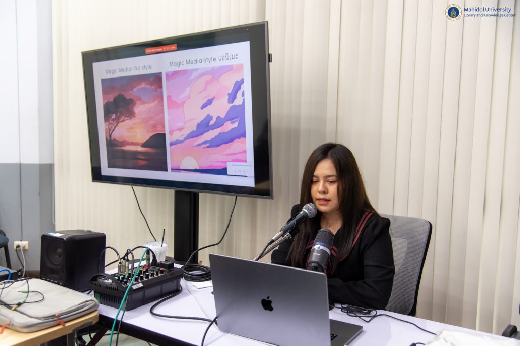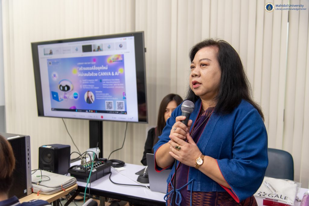 หอสมุดและคลังความรู้มหาวิทยาลัยมหิดล โดย นางอังคณา อินทรพาณิชย์ รักษาการแทนรองผู้อำนวยการฝ่ายบริหารและพัฒนาคุณภาพห้องสมุด เป็นประธานกล่าวเปิดกิจกรรม LIBRARY KM DAY ครั้งที่ 11 ประจำปี 2567 ในหัวข้อ “สร้างสรรค์สื่อยุคใหม่ให้น่าสนใจด้วย Canva & AI” ในวันศุกร์ที่ 24 พฤษภาคม พ.ศ. 2567 เวลา 09.30-11.30 น. ณ ห้อง The Platoon 3 ชั้น 1