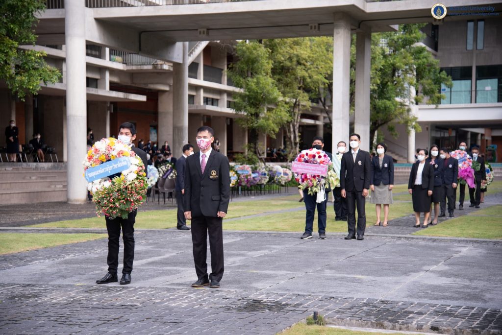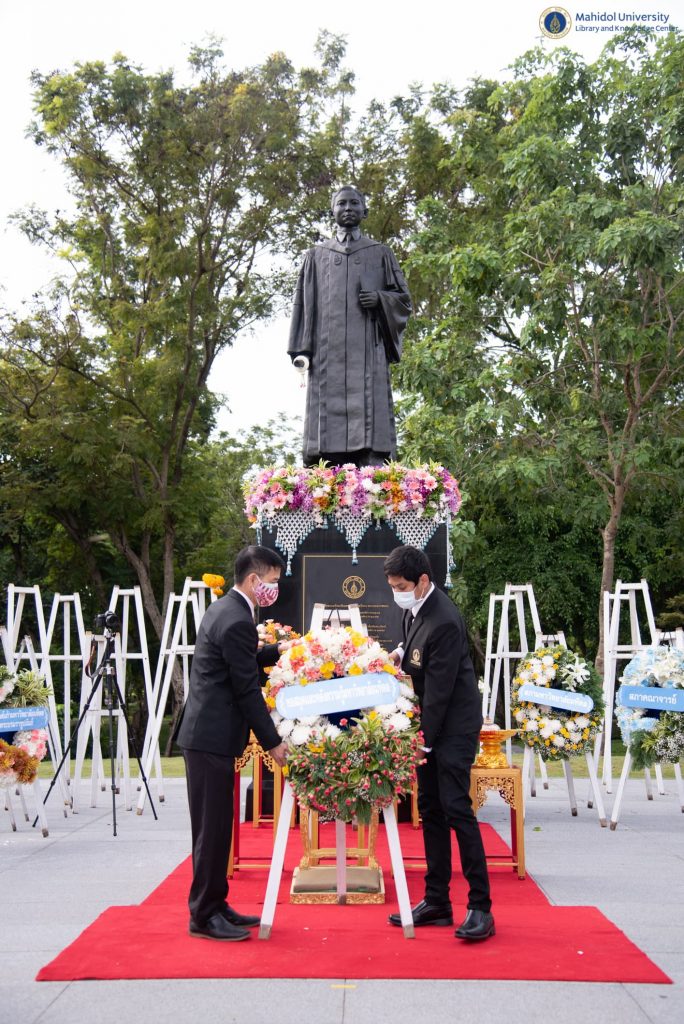 หอสมุดและคลังความรู้ฯ เข้าร่วมพิธีวางพวงมาลาถวายราชสักการะ เนื่องในวันมหิดล ประจำปี 2564