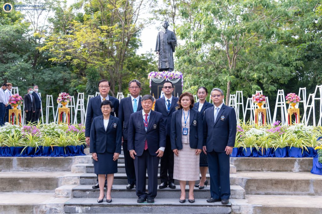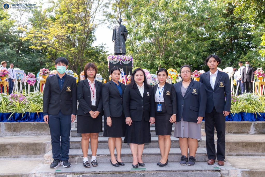 มหาวิทยาลัยมหิดล จัดพิธีวางพวงมาลาถวายราชสักการะพระราชานุสาวรีย์ สมเด็จพระมหิตลาธิเบศร อดุลยเดชวิกรม พระบรมราชชนก เนื่องใน “วันมหิดล” ประจำปี 2566 ณ ศูนย์การเรียนรู้มหิดล มหาวิทยาลัยมหิดล ศาลายา โดยมี ศาสตราจารย์ นายแพทย์บรรจง มไหสวริยะ อธิการบดีมหาวิทยาลัยมหิดล เป็นประธานในพิธีวางพวงมาลา พร้อมด้วย ผู้บริหารมหาวิทยาลัยมหิดล ผู้บริหารส่วนงาน บุคลากร และนักศึกษา มหาวิทยาลัยมหิดล ในโอกาสนี้ ผู้ช่วยศาสตราจารย์ ดร.นพพล เผ่าสวัสดิ์ ผู้อำนวยการหอสมุดและคลังความรู้ฯ เข้าร่วมพิธีวางพวงมาลาถวายราชสักการะฯ ณ พระราชานุสาวรีย์สมเด็จพระมหิตลาธิเบศร อดุลยเดชวิกรม พระบรมราชชนก คณะแพทยศาสตร์ศิริราชพยาบาล มหาวิทยาลัยมหิดล โดยมี คุณอังคณา อินทรพาณิชย์ รองผู้อำนวยการฝ่ายบริหารและพัฒนาคุณภาพห้องสมุด เข้าร่วมพิธีวางพวงมาลาถวายราชสักการะฯ ณ ลานพระราชานุสาวรีย์ สมเด็จพระมหิตลาธิเบศร อดุลยเดชวิกรม พระบรมราชชนก ศูนย์การเรียนรู้มหิดล มหาวิทยาลัยมหิดล ศาลายา และมี คุณจันทรา เทพอวยพร หัวหน้าห้องสมุดวิทยาเขตราชวิถี ผู้แทนส่วนงานหอสมุดและคลังความรู้ฯ เข้าร่วมพิธีวางพวงมาลาถวายราชสักการะฯ ณ ลานพระราชานุสาวรีย์สมเด็จพระมหิตลาธิเบศร อดุลยเดชวิกรม พระบรมราชชนก คณะสาธารณสุขศาสตร์ มหาวิทยาลัยมหิดล