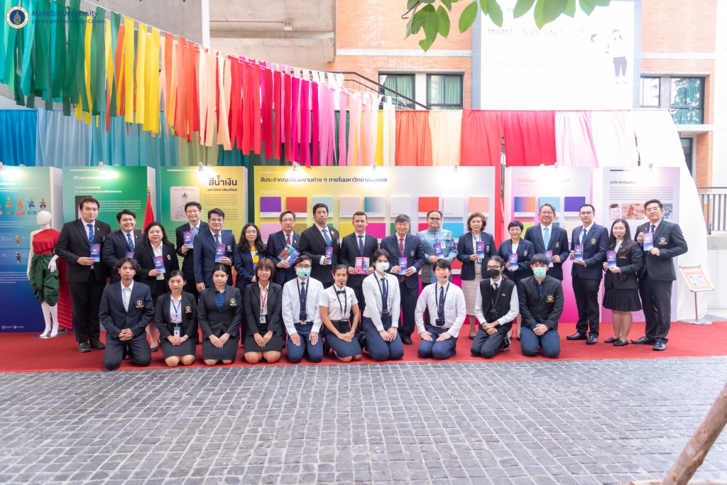 จากนั้น คุณอังคณา อินทรพาณิชย์ รองผู้อำนวยการฝ่ายบริหารและพัฒนาคุณภาพห้องสมุด ให้การต้อนรับ ศาสตราจารย์ นายแพทย์บรรจง มไหสวริยะ อธิการบดีมหาวิทยาลัยมหิดล รับชมนิทรรศการ “สีสันอัตลักษณ์แห่งองค์กรในมหาวิทยาลัยมหิดล : Color Palettes of Mahidol U.” โดย ฝ่ายจดหมายเหตุและพิพิธภัณฑ์ หอสมุดและคลังความรู้มหาวิทยาลัยมหิดล จัดขึ้นเนื่องใน “วันมหิดล” ประจำปี 2566 โดยได้รวบรวมข้อมูลเกี่ยวกับสีสันอัตลักษณ์ต่าง ๆ ของมหาวิทยาลัยมหิดล มาจัดแสดงผ่านรูปแบบนิทรรศการที่สวยงาม สามารถรับชมได้ที่ https://museum.li.mahidol.ac.th/color-palettes/