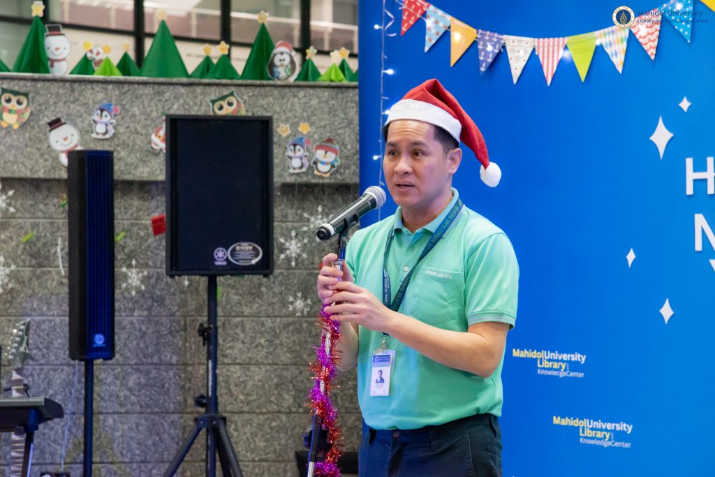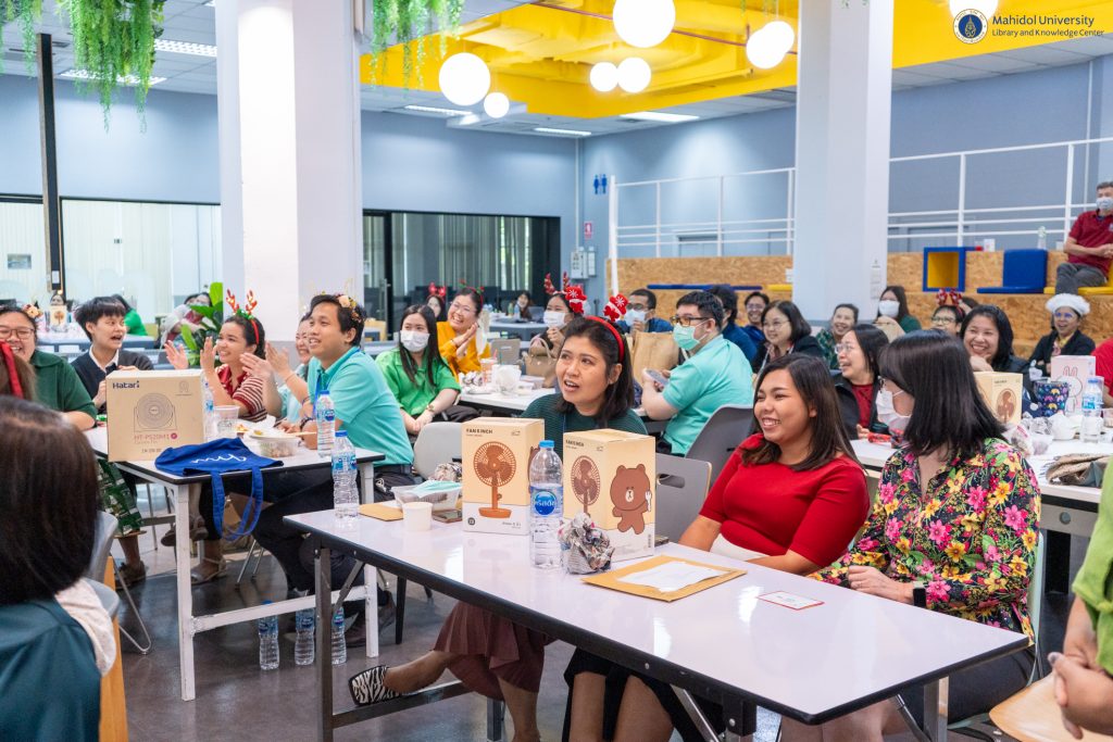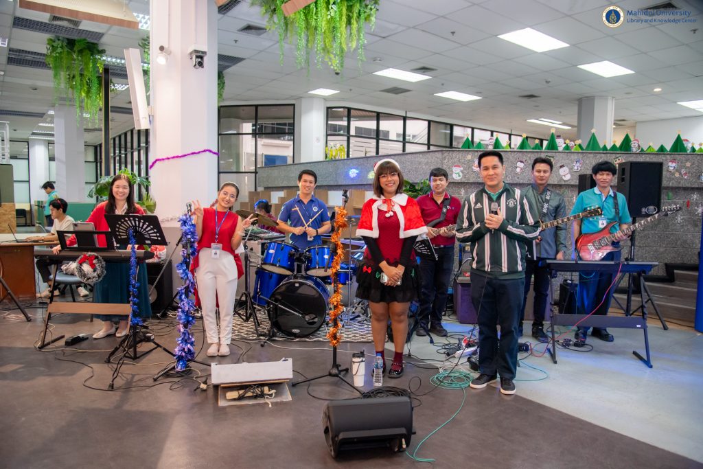 วันที่ 25 ธันวาคม 2566 หอสมุดและคลังความรู้ฯ จัดกิจกรรม “ส่งท้ายปีเก่า ต้อนรับปีใหม่ ประจำปี 2567” ณ บริเวณ Co-MU Space ชั้น 1 อาคารหอสมุดและคลังความรู้ฯ โดยมี ผู้ช่วยศาสตราจารย์ ดร.นพพล เผ่าสวัสดิ์ ผู้อำนวยการหอสมุดและคลังความรู้ฯ เป็นประธานกล่าวเปิดงาน และกล่าวคำอวยพรให้แก่บุคลากรหอสมุดและคลังความรู้ฯ ที่ร่วมดำเนินการจัดกิจกรรมต่าง ๆ อย่างทุ่มเท อีกทั้งได้มีการรับชมวีดิทัศน์ประมวลภาพกิจกรรมที่หอสมุดและคลังความรู้ฯ ได้ดำเนินการจัดตลอดช่วงปี 2566 ที่ผ่านมา กิจกรรมการแสดงดนตรี และการรับประทานอาหารร่วมกัน เพื่อเป็นการสร้างสัมพันธ์อันดีระหว่างคณะผู้บริหาร และบุคลากร