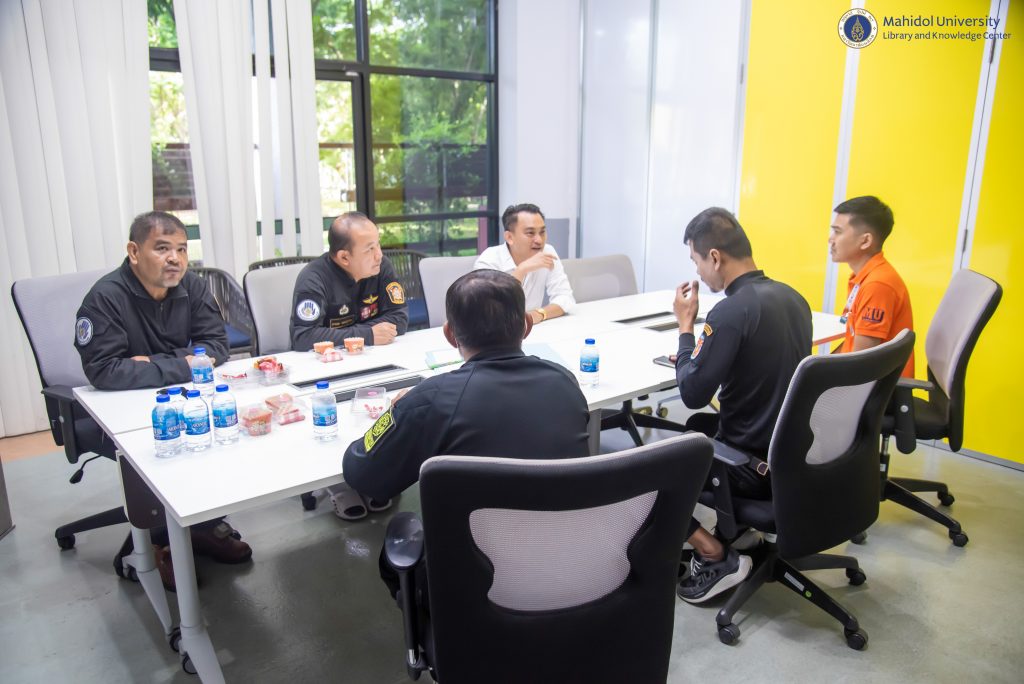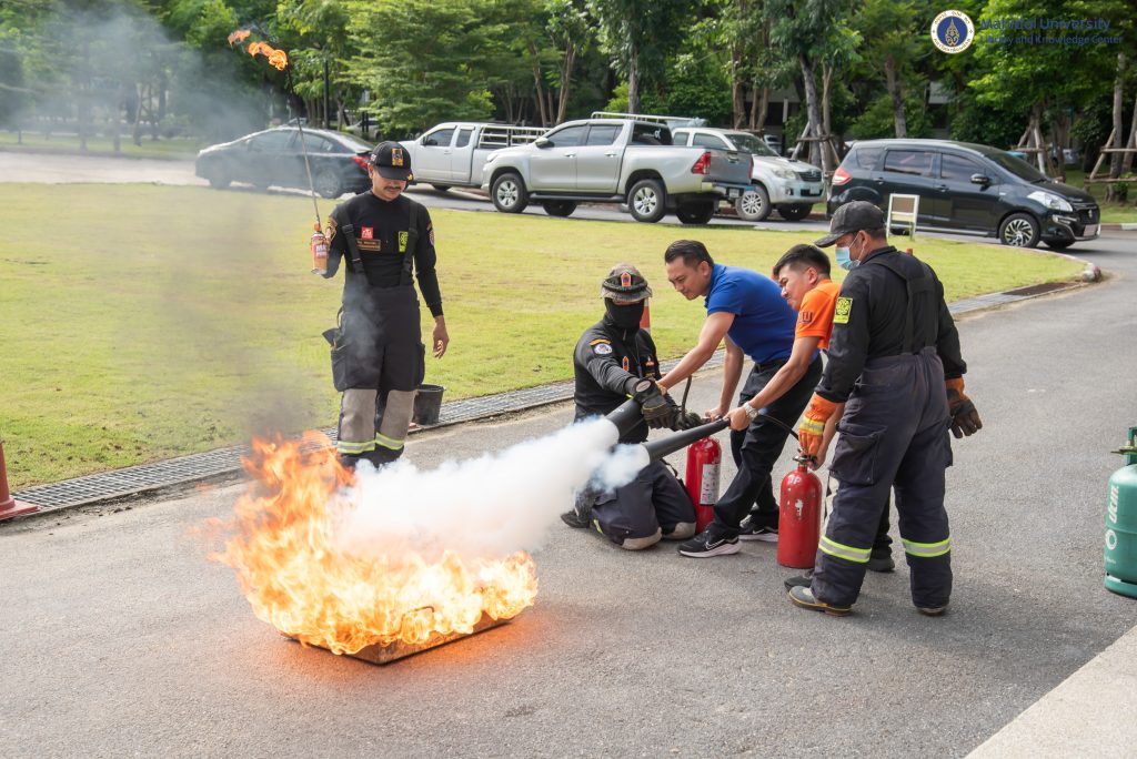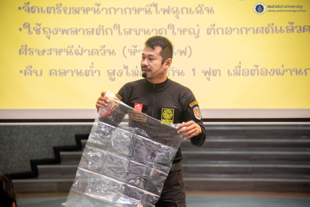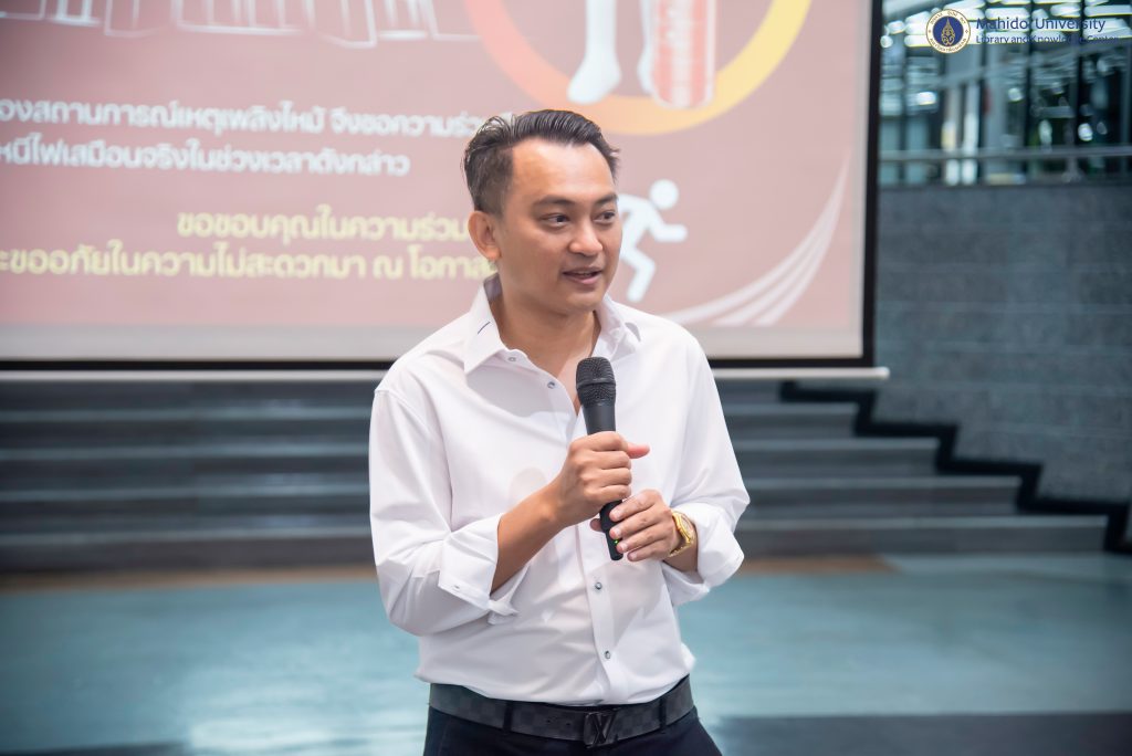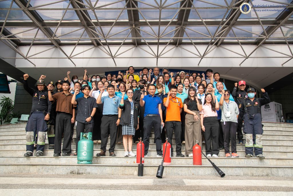 หอสมุดและคลังความรู้มหาวิทยาลัยมหิดล โดย อาจารย์ ดร.เอกชัย วารินศิริรักษ์ รองผู้อำนวยการฝ่ายนวัตกรรมบริการห้องสมุด เป็นประธานกล่าวเปิดโครงการฝึกอบรมดับเพลิงขั้นต้นและฝึกซ้อมอพยพหนีไฟ ประจำปี 2568 โดยมีคณะผู้บริหารหอสมุดและคลังความรู้ฯ เข้ารับการอบรมด้วย ในวันศุกร์ที่ 25 กรกฎาคม พ.ศ. 2568 ณ อาคารหอสมุดและคลังความรู้ฯ ศาลายา ในโอกาสนี้ได้รับเกียรติจากหน่วยฝึกอบรมดับเพลิงยายชา งานป้องกันและบรรเทาสาธารณภัย องค์การบริหารส่วนตำบลยายชา อำเภอสามพราน จังหวัดนครปฐม นำโดยคุณอิทธิเดช จุ้ยสำราญ หัวหน้าทีมวิทยากรดับเพลิงขั้นต้น และทีมงานเป็นวิทยากรบรรยายให้ความรู้การป้องกันและรับงับอัคคีภัย การเผชิญเหตุฉุกเฉินและการช่วยชีวิต พร้อมกันนี้ได้ร่วมประเมินผลการซ้อมแผนอพยพหนีไฟของหอสมุดและคลังความรู้ฯ ซึ่งบุคลากรของหอสมุดและคลังความรู้ฯ และนักศึกษา ได้ร่วมการซ้อมแผนอพยพหนีไฟฯ อย่างพร้อมเพียง เพื่อให้บุคลากรของหอสมุดและคลังความรู้ฯ ได้ทบทวนแผนและเพิ่มทักษะการช่วยชีวิต สามารถนำไปปฏิบัติได้จริง เมื่อต้องเผชิญกับสถานการณ์ฉุกเฉินที่เป็นอันตรายได้อย่างถูกต้องเหมาะสมต่อไป
