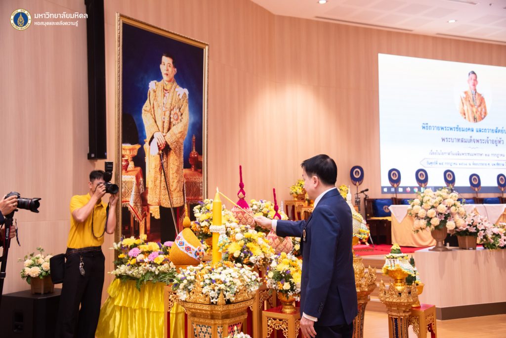 มหาวิทยาลัยมหิดล จัดกิจกรรมเฉลิมพระเกียรติ พระบาทสมเด็จพระเจ้าอยู่หัว เนื่องในโอกาสมหามงคลเฉลิมพระชนมพรรษา ครบ 73 พรรษา (28 กรกฎาคม พ.ศ. 2568) โดยมีศาสตราจารย์ นายแพทย์ปิยะมิตร ศรีธรา อธิการบดีมหาวิทยาลัยมหิดล เป็นประธานในพิธีทำบุญตักบาตรถวายเป็นพระราชกุศล พระภิกษุสงฆ์และสามเณร จำนวน 30 รูป จากนั้นเป็นพิธีบำเพ็ญกุศลถวายเป็นพระราชกุศล พิธีถวายพระพรชัยมงคล และถวายสัตย์ปฏิญาณ เพื่อเป็นการแสดงความจงรักภักดี และสำนึกในพระมหากรุณาธิคุณแด่พระบาทสมเด็จพระเจ้าอยู่หัว ในโอกาสนี้ หอสมุดและคลังความรู้มหาวิทยาลัยมหิดล นำโดยคุณอังคณา อินทรพาณิชย์ รองผู้อำนวยการฝ่ายบริหารและพัฒนาคุณภาพ อาจารย์ ดร.เอกชัย วารินศิริรักษ์ รองผู้อำนวยการฝ่ายนวัตกรรมบริการห้องสมุด พร้อมด้วยบุคลากรหอสมุดและคลังความรู้ฯ ร่วมพิธีในครั้งนี้ ในวันศุกร์ที่ 25 กรกฎาคม พ.ศ. 2568 ณ สำนักงานอธิการบดี มหาวิทยาลัยมหิดล ศาลายา