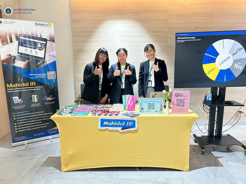 หอสมุดและคลังความรู้มหาวิทยาลัยมหิดล โดย งานเผยแพร่ผลงานวิชาการของมหาวิทยาลัย ฝ่ายคลังความรู้ ได้รับเชิญร่วมออกบูธกิจกรรมคลังสารสนเทศสถาบันของมหาวิทยาลัยมหิดล (Mahidol IR) ในงานมหกรรม R2R @GJ: เรียนรู้ร่วมกัน สรรค์สร้างองค์กร ประจำปี 2568 ในวันศุกร์ที่ 25 กรกฎาคม พ.ศ. 2568 ณ ห้องประชุมภักดีบดินทร์ ชั้น 5 อาคารกาญจนาบริพัฒน์