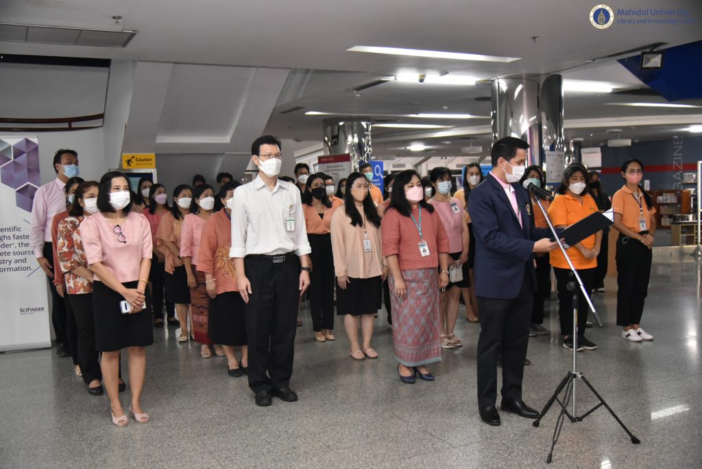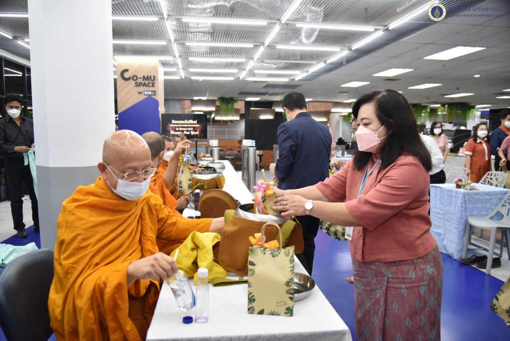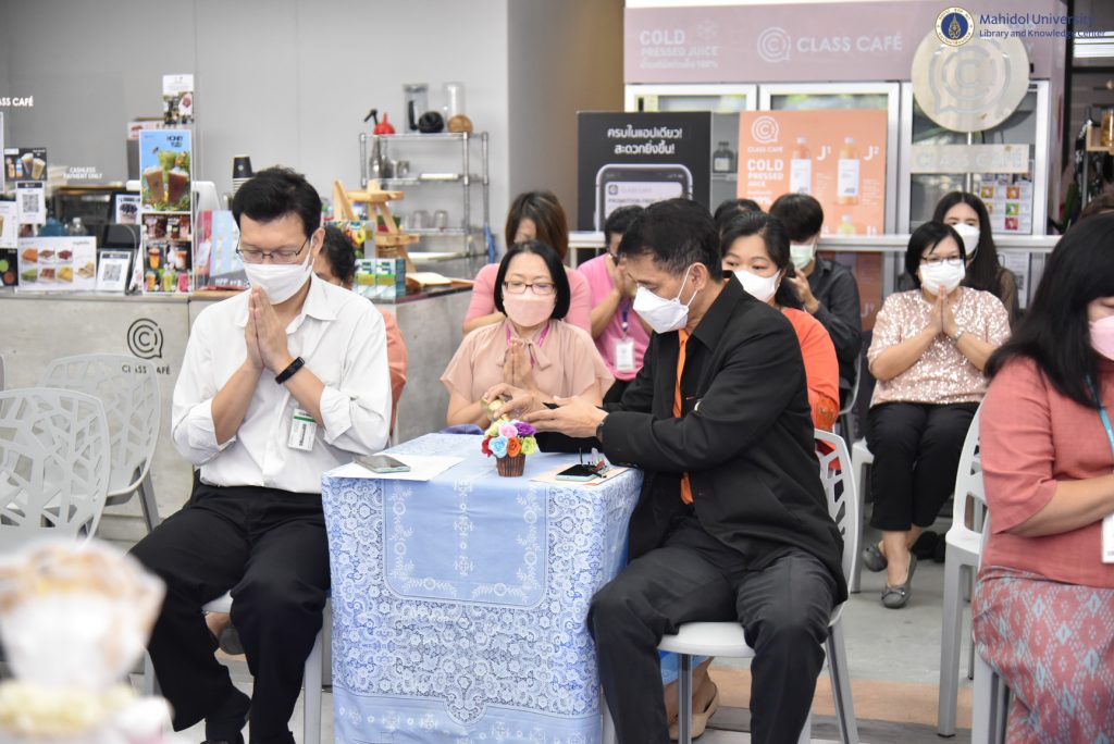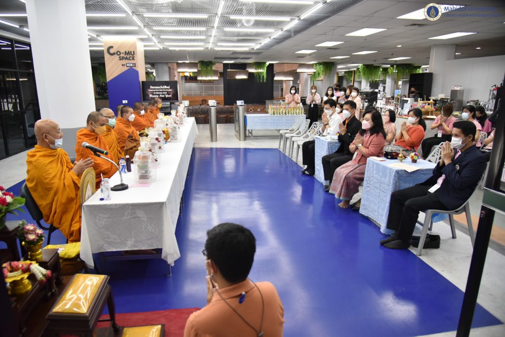 หอสมุดและคลังความรู้มหาวิทยาลัยมหิดล จัดพิธีทำบุญตักบาตรพระสงฆ์จำนวน 9 รูป เนื่องในโอกาสวันขึ้นปีใหม่ 2566 และจัดกิจกรรมถวายพระพรชัยมงคล แด่สมเด็จพระเจ้าลูกเธอ เจ้าฟ้าพัชรกิติยาภา นเรนทิราเทพยวดี กรมหลวงราชสาริณีสิริพัชร มหาวัชรราชธิดา ให้พระองค์ทรงหายจากพระอาการประชวรและมีพระพลานามัยแข็งแรงโดยเร็ววัน โดยคณะผู้บริหาร ประกอบด้วย ผู้ช่วยศาสตราจารย์ ดร.นพพล เผ่าสวัสดิ์ ผู้อำนวยการหอสมุดและคลังความรู้ฯ คุณอังคณา อินทรพาณิชย์ รองผู้อำนวยการฝ่ายบริหารและพัฒนาคุณภาพห้องสมุด ดร.อภิภู สิทธิภูมิมงคล รองผู้อำนวยการฝ่ายเทคโนโลยีการศึกษาและพันธกิจพิเศษ และผู้ช่วยศาสตราจารย์ ดร.ประพัฒน์ สุริยผล รองผู้อำนวยการฝ่ายพัฒนาเทคโนโลยีสารสนเทศและนวัตกรรม และบุคลากรหอสมุดและคลังความรู้ฯ เข้าร่วมโดยพร้อมเพรียงกัน เมื่อวันจันทร์ที่ 26 ธันวาคม 2565 ที่ผ่านมา ณ บริเวณ Co-MU Space อาคารหอสมุดและคลังความรู้มหาวิทยาลัยมหิดล ศาลายา
