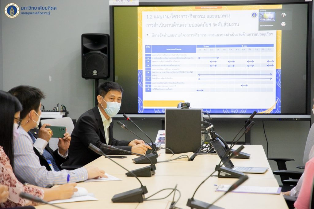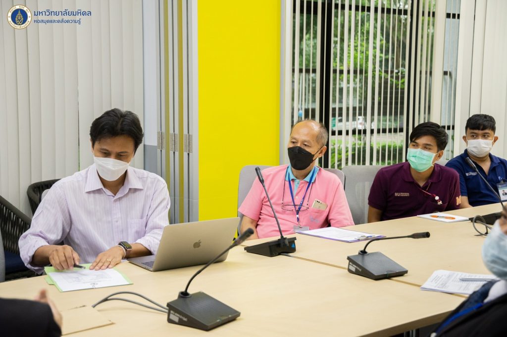 หอสมุดและคลังความรู้มหาวิทยาลัยมหิดล โดย ดร.อภิภู สิทธิภูมิมงคล รองผู้อำนวยการฝ่ายเทคโนโลยีการศึกษาและพันธกิจพิเศษ เป็นประธานให้การต้อนรับคณะกรรมการจาก ศูนย์บริหารความปลอดภัยอาชีวอนามัยและสภาพแวดล้อมในการทำงาน (COSHEM) ภายใต้ โครงการ “แลกเปลี่ยนเรียนรู้ด้านความปลอดภัย อาชีวอนามัย และสภาพแวดล้อม ในการทำงาน” มหาวิทยาลัยมหิดล ประจำปี 2565 พร้อมด้วยบุคลากรของหอสมุดและคลังความรู้ฯ และได้นำเสนอผลงาน รายงานข้อมูลผลการดำเนินงานฯ เพื่อแลกเปลี่ยนแนวทางการบริหารจัดการด้านความปลอดภัย อาชีวอนามัย และสภาพแวดล้อมในการทำงาน ณ ห้อง Platoon ชั้น 1 อาคารหอสมุดและคลังความรู้มหาวิทยาลัยมหิดล ในวันอังคารที่ 26 กรกฎาคม 2565 ที่ผ่านมา