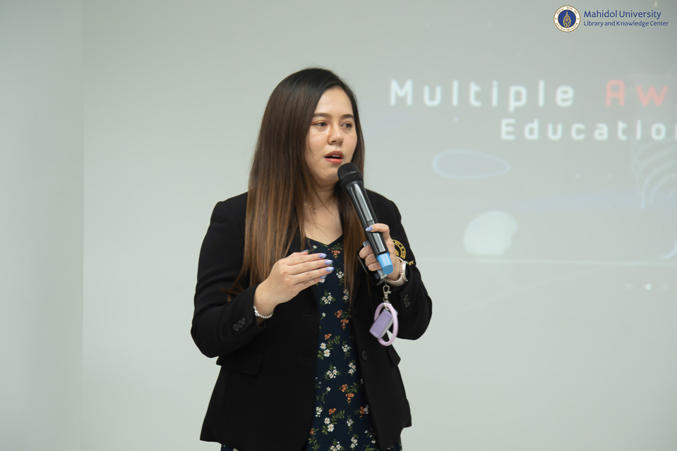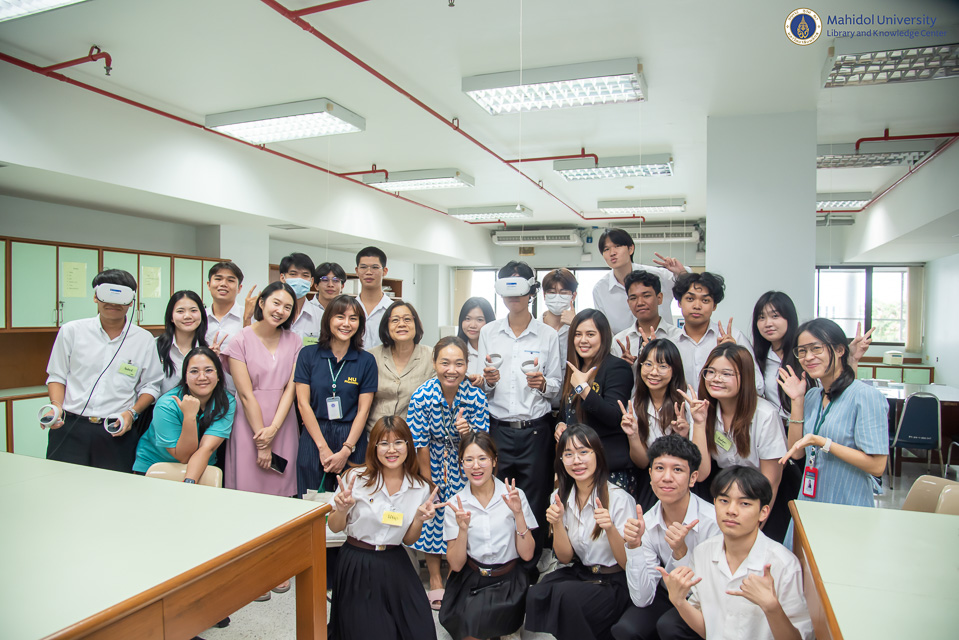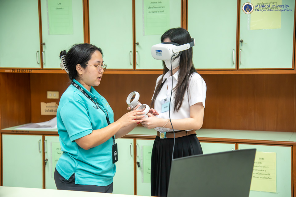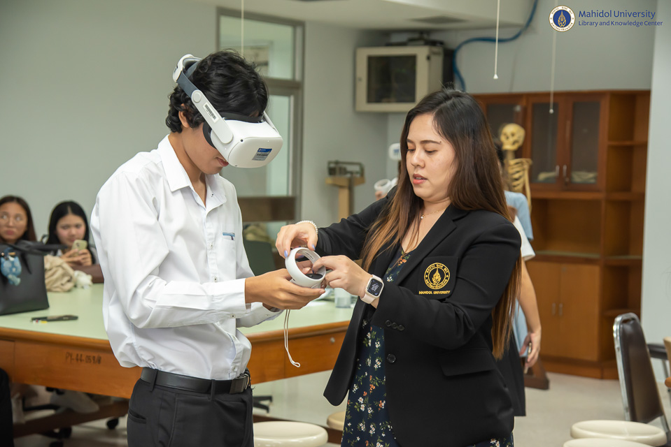 หอสมุดและคลังความรู้มหาวิทยาลัยมหิดล ได้รับเชิญจัดกิจกรรม “Explore your body” ให้กับนักศึกษาภาควิชาสรีรวิทยา คณะเภสัชศาสตร์ มหาวิทยาลัยมหิดล จำนวน 144 คน โดยมีคุณนภัสวรรณ สุพัตร นักวิชาการโสตทัศนศึกษา (ผู้ชำนาญการพิเศษ) คุณสรวิศ อัตตปรีชากุล นักวิชาการสารสนเทศ งานเทคโนโลยีการศึกษา คุณพัชรณัฏฐ์ คุณเจริญหิรัญ บรรณารักษ์ และคุณชนกชนม์ โรจน์บวรวิทยา เจ้าหน้าที่บริหารงานทั่วไป ห้องสมุดคณะเภสัชศาสตร์ เป็นวิทยากรสาธิตการประยุกต์ใช้เทคโนโลยีแว่น VR เพื่อการเรียนรู้ โดยมีอาจารย์ ดร.ภญ.ชญานิน กีรติไพบูลย์ อาจารย์ประจำสาขาวิชาชีวเภสัชศาสตร์ ให้การต้อนรับ ในวันศุกร์ที่ 26 กันยายน พ.ศ. 2568 ณ อาคารราชรัตน์ คณะเภสัชศาสตร์ มหาวิทยาลัยมหิดล