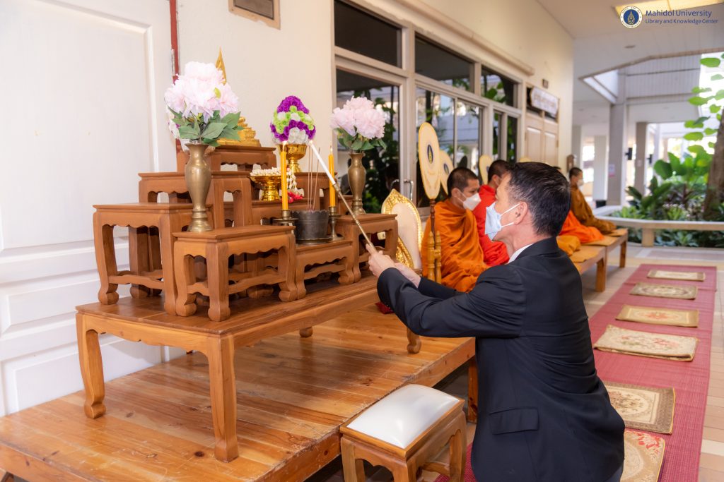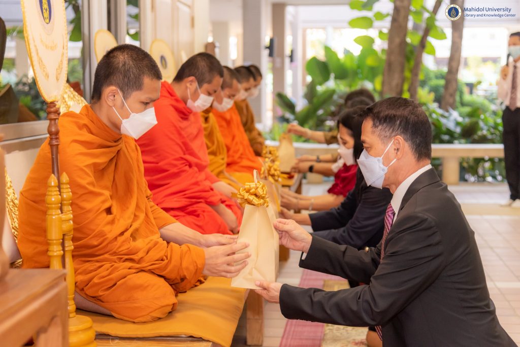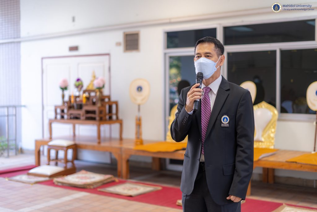 หอสมุดและคลังความรู้มหาวิทยาลัยมหิดล โดย ดร.อภิภู สิทธิภูมิมงคล รองผู้อำนวยการฝ่ายเทคโนโลยีการศึกษาและพันธกิจพิเศษ ได้รับเกียรติเป็นประธานในพิธีทำบุญ พระสงฆ์ จำนวน 5 รูป และร่วมรับฟังธรรมเทศนา ร่วมกับผู้ช่วยศาสตราจารย์ ดร.กรกนก สารภิรมย์ รองคณบดีฝ่ายวิจัยและวิเทศสัมพันธ์ วิทยาลัยศาสนศึกษามหาวิทยาลัยมหิดล เนื่องในกิจกรรมพิธีทำบุญเดือนเกิดทุกวันศุกร์ สุดท้ายของเดือน ตลอดปี พ.ศ. 2566 จัดโดยวิทยาลัยศาสนศึกษามหาวิทยาลัยมหิดล เมื่อวันศุกร์ที่ 27 มกราคม 2566 ที่ผ่านมา ณ วิทยาลัยศาสนศึกษา มหาวิทยาลัยมหิดล