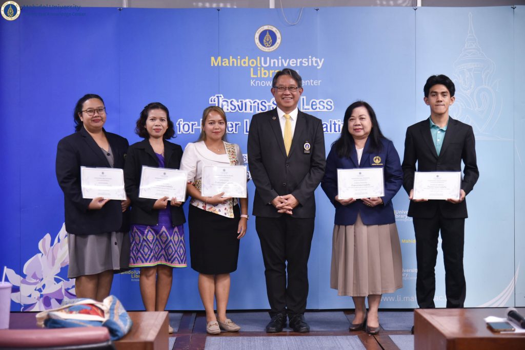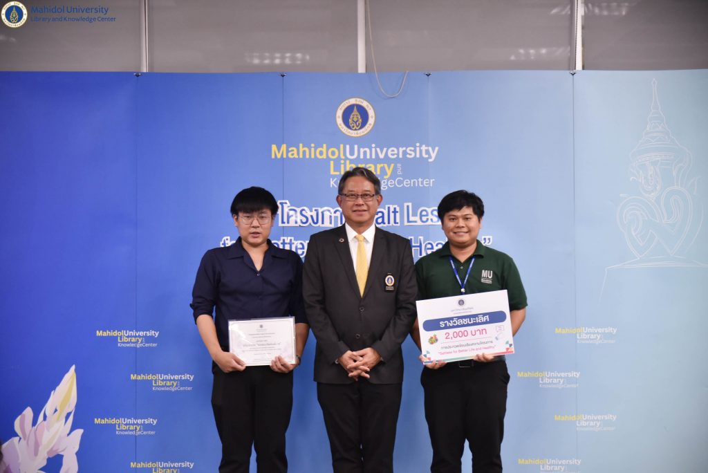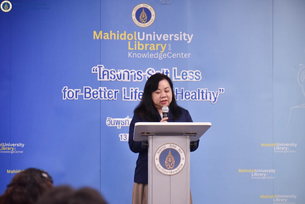 วันพุธที่ 27 มีนาคม 2567 หอสมุดและคลังความรู้มหาวิทยาลัยมหิดล ดำเนินการจัดโครงการ Salt Less for Better Life & Healthyโดยได้รับเกียรติจาก รองศาสตราจารย์ ดร. เภสัชกรสมภพ ประธานธุรารักษ์ รองอธิการบดีฝ่ายแผน พัฒนาคุณภาพและบริการวิชาการ มหาวิทยาลัยมหิดล เป็นประธานในพิธีฯ และให้เกียรติมอบรางวัลแก่ผู้ที่ชนะการประกวดเรียงความ หัวข้อ “Salt Less for Better Life & Healthy” คณะผู้ตรวจสอบการคัดลอกผลงานทางวิชาการ และคณะกรรมการตัดสินรางวัลการประกวดฯ นอกจากนี้ ได้มีการจัดบรรยายวิชาการ เรื่อง “ผลกระทบต่อสุขภาพจากการบริโภคโซเดียมเกินมาตรฐาน” โดย รองศาสตราจารย์ นายแพทย์สุรศักดิ์ กันตชูเวสศิริ คณะแพทยศาสตร์โรงพยาบาลรามาธิบดี มหาวิทยาลัยมหิดล และประธานเครือข่ายลดบริโภคเค็ม และคุณนภทีป์ ป้อมสันเทียะ นักกำหนดอาหารวิชาชีพ เครือข่ายลดบริโภคเค็ม โดยมีคุณอังคณา อินทรพาณิชย์ รองผู้อำนวยการฝ่ายบริหารและพัฒนาคุณภาพห้องสมุด หอสมุดและคลังความรู้ฯ ให้การต้อนรับและกล่าวรายงานวัตถุประสงค์โครงการฯ ณ ห้องประชุม 1 ชั้น 3 อาคารหอสมุดและคลังความรู้ฯ ศาลายา และในรูปแบบออนไลน์ผ่าน Cisco WebEx Meeting