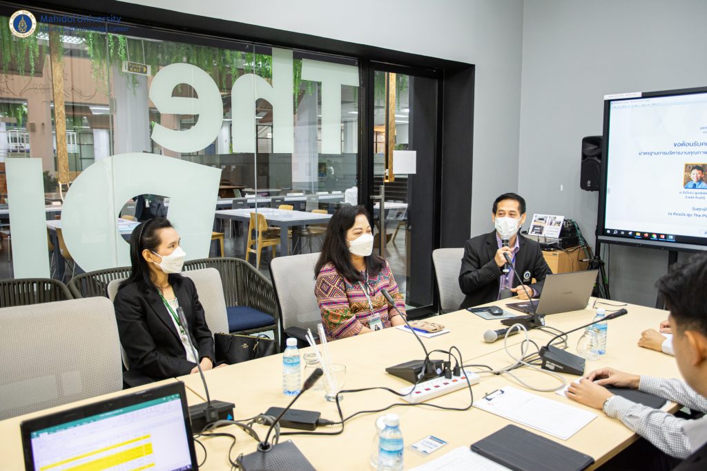 หอสมุดและคลังความรู้มหาวิทยาลัยมหิดล โดยคณะผู้บริหารหอสมุดและคลังความรู้ฯ คุณอังคณา อินทรพาณิชย์ รองผู้อำนวยการฝ่ายบริหารและพัฒนาคุณภาพห้องสมุด ดร.อภิภู สิทธิภูมิมงคล รองผู้อำนวยการฝ่ายเทคโนโลยีการศึกษาและพันธกิจพิเศษ และรองศาสตราจารย์ ดร.ทัศนียา รัตนฤๅทัย นพรัตน์แจ่มจำรัส รองผู้อำนวยการฝ่ายวิจัยและวิชาการ ให้การต้อนรับ คณะกรรมการตรวจประเมิน Main Audit รับรองระบบมาตรฐานการบริหารงานคุณภาพ ISO 9001:2015 และมาตรฐานการจัดการด้านสิ่งแวดล้อม ISO 14001:2015 นำโดยคุณจิรโรจน์ พูลพิพัฒน์ (Lead Audit) คุณพุฒิไนย เวชกามา และคุณสิรภพ พินิจการ ในวันศุกร์ที่ 27 ตุลาคม 2566 ที่ผ่านมา ณ อาคารหอสมุดและคลังความรู้มหาวิทยาลัยมหิดล และได้รับเกียรติจาก รองศาสตราจารย์ ดร.สยาม อรุณศรีมรกต รองคณบดีฝ่ายวิชาการและกิจการนักศึกษา คณะสิ่งแวดล้อมและทรัพยากรศาสตร์ มหาวิทยาลัยมหิดล และผู้ช่วยศาสตราจารย์ อัจฉรา จิรกุลชัยวงศ์ นักวิจัย ศูนย์วิจัยตรวจประเมินและให้การรับรองมาตรฐานการจัดการสิ่งแวดล้อม คณะสิ่งแวดล้อมและทรัพยากรศาสตร์ มหาวิทยาลัยมหิดล เข้าร่วมรับฟังการตรวจประเมินฯ และให้ข้อเสนอแนะในครั้งนี้ด้วย