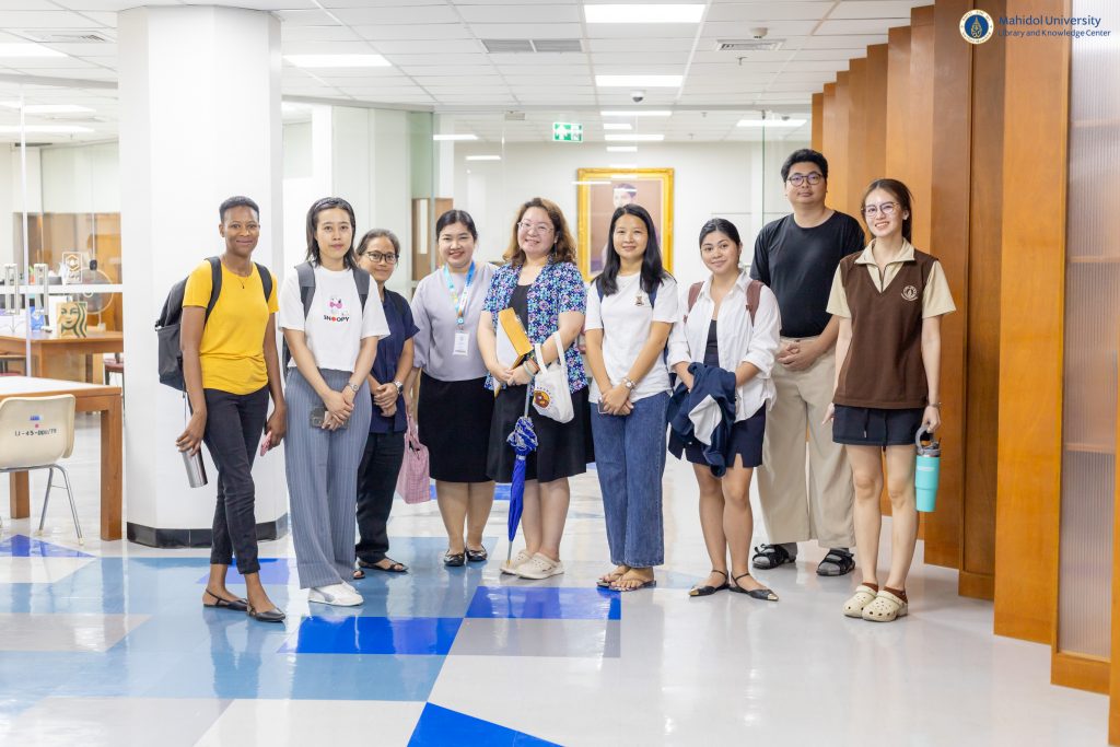 หอสมุดและคลังความรู้มหาวิทยาลัยมหิดล ให้การต้อนรับนักศึกษาจากหลักสูตรปรัชญาดุษฎีบัณฑิต สาขาวิชาประชากรศาสตร์ประยุกต์และการวิจัยทางสังคม (หลักสูตรนานาชาติ) และหลักสูตรศิลปศาสตรมหาบัณฑิต สาขาวิชาประชากรและสุขภาพทางเพศและอนามัยเจริญพันธุ์ (หลักสูตรนานาชาติ) จากสถาบันวิจัยประชากรและสังคม มหาวิทยาลัยมหิดล จำนวน 9 คน ในโอกาสเข้ารับการปฐมนิเทศการใช้ห้องสมุด ในวันพฤหัสบดีที่ 28 สิงหาคม พ.ศ. 2568 ณ หอสมุดและคลังความรู้มหาวิทยาลัยมหิดล (ศาลายา) โดยมีวัตถุประสงค์เพื่อแนะนำบริการและทรัพยากรสารสนเทศเพื่อการค้นคว้าอ้างอิงในการเรียนและการทำวิทยานิพนธ์