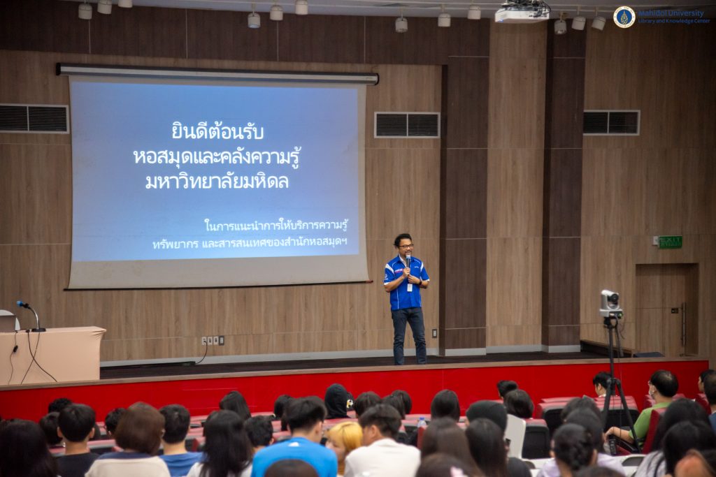 หอสมุดและคลังความรู้ฯ จัดกิจกรรม “Mahidol Library The Roadshow 2024” ภายใต้โครงการปฐมนิเทศการใช้ห้องสมุดสำหรับนักศึกษาระดับปริญญาตรี ชั้นปีที่ 1 ปีการศึกษา 2567 ตั้งแต่วันที่ 1 สิงหาคม – 28 กันยายน 2567 ให้กับคณะและสถาบันต่าง ๆ เพื่อเป็นการส่งเสริมให้นักศึกษาระดับปริญญาตรี ชั้นปีที่ 1 ได้รับข้อมูลข่าวสารและสิทธิประโยชน์ที่เกี่ยวกับการบริการต่าง ๆ และสามารถเข้าถึงทรัพยากรสารสนเทศของห้องสมุด อันเป็นรากฐานที่สำคัญของการศึกษาและพัฒนาศักยภาพในการค้นคว้าเพื่อการวิจัยในอนาคต