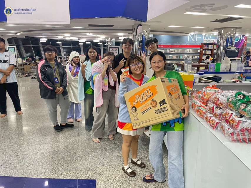 หอสมุดและคลังความรู้มหาวิทยาลัยมหิดล เปิดให้บริการพื้นที่นั่งอ่านหนังสือตลอด 24 ชั่วโมง สำหรับนักศึกษามหาวิทยาลัยมหิดล ในช่วงสอบกลางภาคเรียน ณ บริเวณพื้นที่อ่านชั้น 1 และชั้น 2 อาคารหอสมุดและคลังความรู้ฯ เป็นระยะเวลา 5 วัน ระหว่างวันที่ 24 – 28 กันยายน พ.ศ. 2568 โดยมีนักศึกษา อาจารย์ และบุคลากรของมหาวิทยาลัยมหิดล เข้าใช้บริการรวมทั้งสิ้นจำนวน 4,319 คน ทั้งนี้ หอสมุดและคลังความรู้ฯ ได้จัดสิ่งอำนวยความสะดวกและความปลอดภัยให้กับผู้ใช้บริการ พร้อมทั้งจัดอาหาร ขนมขบเคี้ยว และเครื่องดื่มสำหรับให้บริการ โดยได้รับการสนับสนุนจากบริษัท โรงงานแม่รวย จำกัด รวมถึงบุคลากรหอสมุดและคลังความรู้ฯ คณาจารย์มหาวิทยาลัยมหิดล และประชาชนทั่วไป
