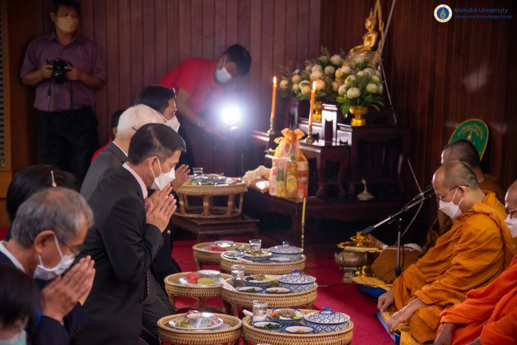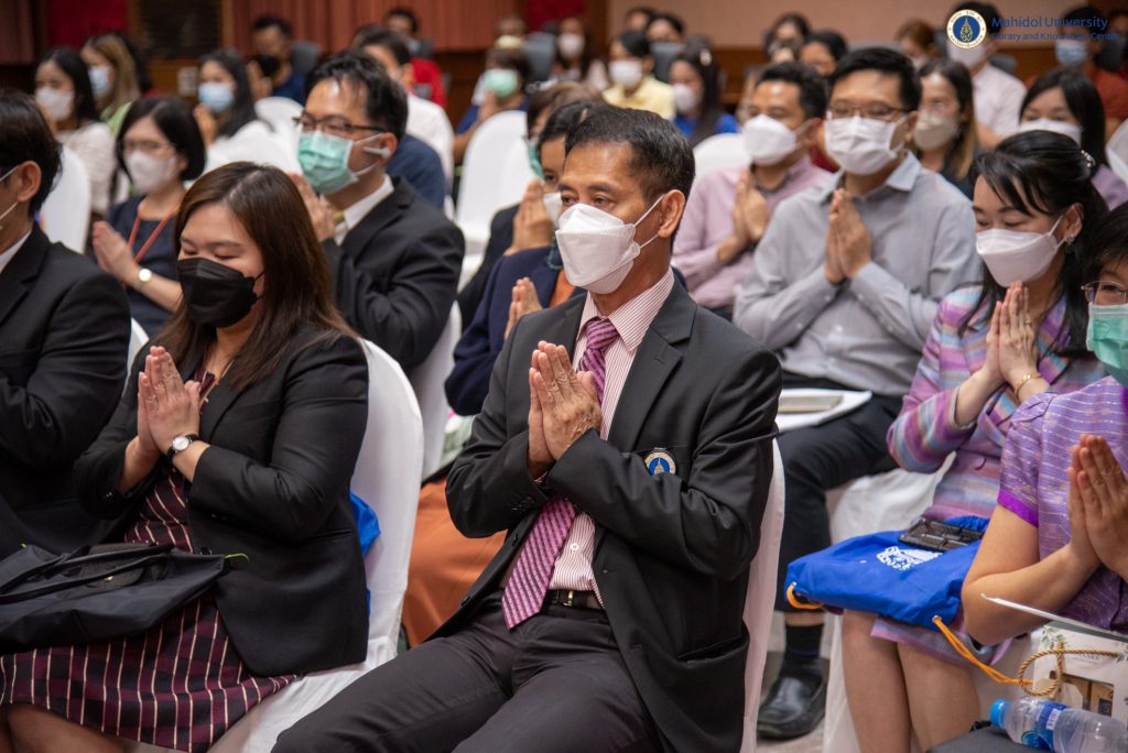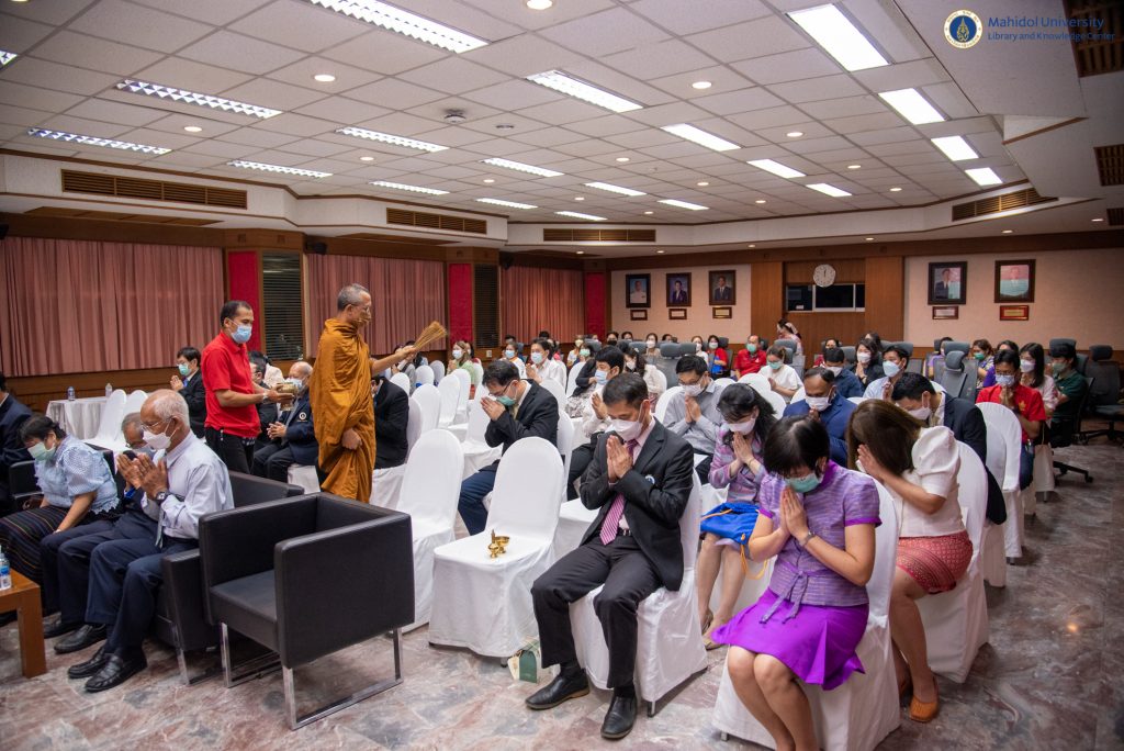 หอสมุดและคลังความรู้มหาวิทยาลัยมหิดล โดย ดร.อภิภู สิทธิภูมิมงคล รองผู้อำนวยการฝ่ายเทคโนโลยีการศึกษาและพันธกิจพิเศษ ได้รับเกียรติเป็นผู้แทนหอสมุดและคลังความรู้ฯ เข้าร่วมพิธีวันคล้ายวันสถาปนาคณะวิศวกรรมศาสตร์ มหาวิทยาลัยมหิดล ครบรอบ 32 ปี และร่วมสักการะสิ่งศักดิ์สิทธิ์และพิธีสงฆ์เพื่อเป็นศิริมงคลแก่คณะวิศวกรรมศาสตร์ฯ และในโอากสนี้ทางหอสมุดและคลังความรู้ฯ ได้มอบของที่ระลึก เพื่อร่วมแสดงความยินดี โดยมี ผศ.ดร.ก่อพร พันธุ์ยิ้ม รองคณบดีฝ่ายบริหารและการคลัง คณะวิศวกรรมศาสตร์ เป็นผู้รับมอบ ในวันจันทร์ที่ 29 สิงหาคม 2565 ที่ผ่านมา ณ ห้องประชุม R-114 คณะวิศวกรรมศาสตร์ มหาวิทยาลัยมหิดล