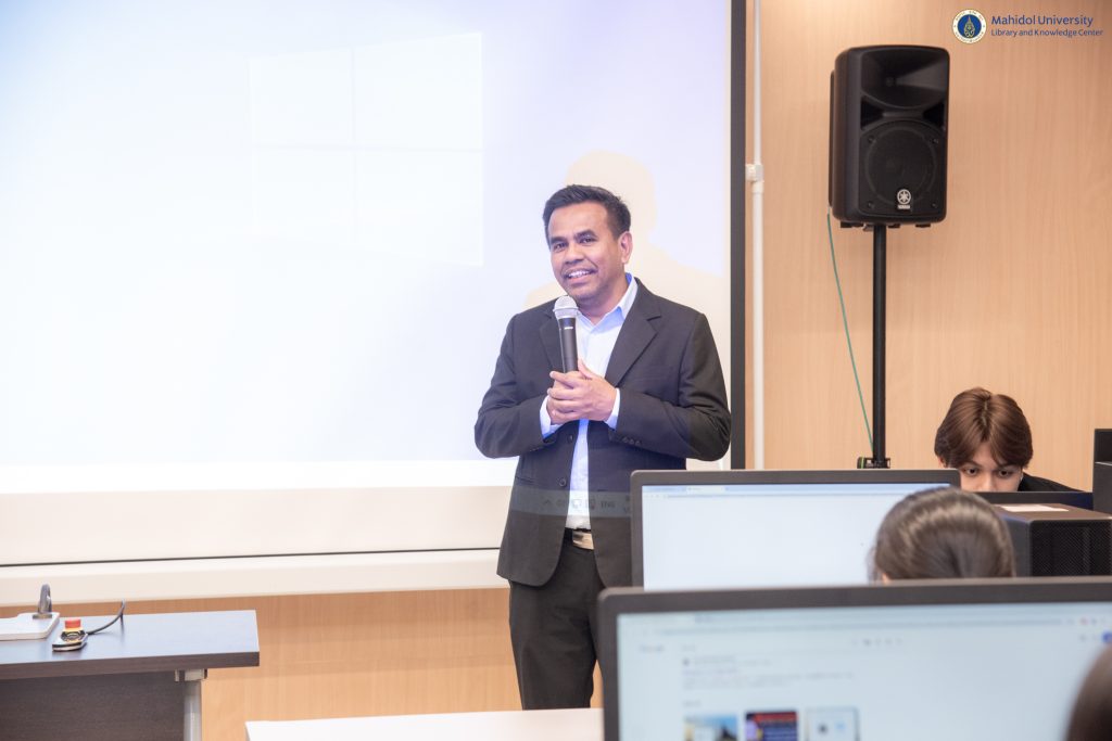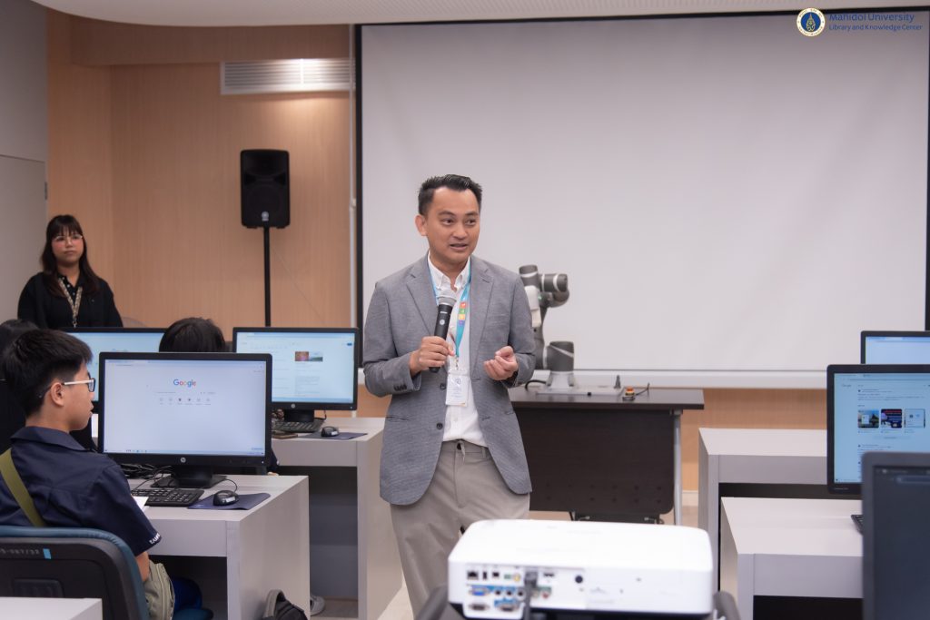 อาจารย์ ดร.เอกชัย วารินศิริรักษ์ รองผู้อำนวยการฝ่ายนวัตกรรมบริการห้องสมุด ให้เกียรติเป็นประธานกล่าวเปิดโครงการ พร้อมด้วยนักเรียนและคณะครูจากโรงเรียนเบญจมราชรังสฤษฎิ์ จังหวัดฉะเชิงเทรา จำนวน 40 คน เข้าร่วมการอบรม ระหว่างวันที่ 28 – 29 มกราคม พ.ศ. 2569 ณ อาคารหอสมุดและคลังความรู้มหาวิทยาลัยมหิดล ศาลายา