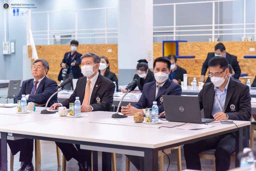 มหาวิทยาลัยมหิดล โดย ศาสตราจารย์คลินิกเกียรติคุณ นายแพทย์ปิยะสกล สกลสัตยาทร นายกสภามหาวิทยาลัยมหิดล พร้อมด้วย คณะกรรมการสภามหาวิทยาลัยมหิดล และผู้ทรงคุณวุฒิ นำโดย ศาสตราจารย์ นพ.บรรจง มไหสวริยะ อธิการบดี มหาวิทยาลัยมหิดล เข้าร่วมเยี่ยมชมส่วนงานและรับฟังผลการดำเนินงานของหอสมุดและคลังความรู้มหาวิทยาลัยมหิดล ประจำปี 2566 (University Council Visit : 3) เมื่อวันพฤหัสบดีที่ 29 มิถุนายน พ.ศ. 2566 ที่ผ่านมา ณ บริเวณ Co-MU Space ชั้น 1 อาคารหอสมุดและคลังความรู้มหาวิทยาลัยมหิดล ศาลายา และผ่านระบบประชุมออนไลน์ WebEx Meeting
