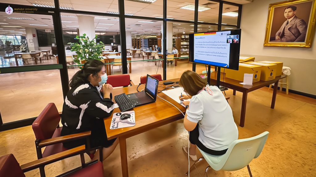งานบริหารจดหมายเหตุ ฝ่ายจดหมายเหตุและพิพิธภัณฑ์ฯ ให้ความรู้ เรื่อง แนวทางการประเมินคุณค่าเอกสารจดหมายเหตุมหาวิทยาลัยมหิดล พ.ศ. 2565 แก่บุคลากรวิทยาเขตกาญจนบุรี