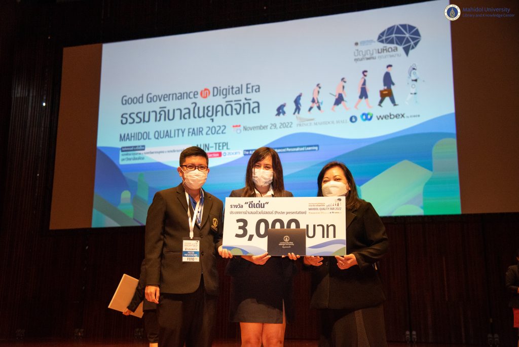 หอสมุดและคลังความรู้ฯ ได้รับรางวัล Poster Presentation ดีเด่น ในงาน Mahidol Quality Fair 2022 จากโครงการส่งเสริมการเข้าถึงผลงานวิชาการด้วยสื่อวีดิทัศน์ (The Author)