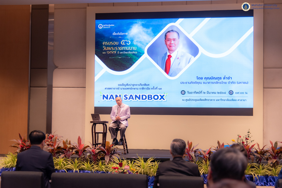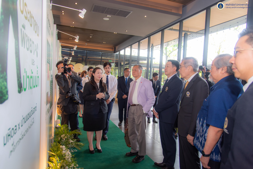 มหาวิทยาลัยมหิดล จัดงานครบรอบ “56 ปี วันพระราชทานนาม และ 137 ปี มหาวิทยาลัยมหิดล” โดยมี ศาสตราจารย์ นายแพทย์ปิยะมิตร ศรีธรา อธิการบดีมหาวิทยาลัยมหิดล เป็นประธานในพิธีวางพานพุ่มถวายราชสักการะพระรูปสมเด็จพระมหิตลาธิเบศร อดุลยเดชวิกรม พระบรมราชชนก ในวันอาทิตย์ที่ 2 มีนาคม พ.ศ. 2568 ณ มหิดลสิทธาคาร ในโอกาสนี้ หอสมุดและคลังความรู้มหาวิทยาลัยมหิดล นำโดย คุณอังคณา อินทรพาณิชย์ รองผู้อำนวยการฝ่ายบริหารและพัฒนาคุณภาพ พร้อมด้วยบุคลากรหอสมุดและคลังความรู้ฯ ร่วมวางพานพุ่มถวายราชสักการะฯ และรับฟังปาฐกถาเกียรติยศ ศาสตราจารย์ นายแพทย์กษาน จาติกวนิช ครั้งที่ 13 เรื่อง “Nan Sandbox” โดยได้รับเกียรติจาก คุณบัณฑูร ล่ำซำ ประธานกิตติคุณ ธนาคารกสิกรไทย จำกัด (มหาชน) พร้อมกันนี้ได้ให้การต้อนรับท่านอธิการบดีฯ คณะผู้บริหารและหัวหน้าส่วนงานต่าง ๆ ของมหาวิทยาลัยมหิดล เข้าเยี่ยมชมนิทรรศการ “ประชาชน พืชยา และป่าต้นน้ำ: Mahidol x Nan Sandbox เพื่อการพัฒนาอย่างยั่งยืน” จัดโดยงานพิพิธภัณฑ์และนิทรรศการ หอสมุดและคลังความรู้ฯ โดยนำเสนอความเชื่อมโยงระหว่าง มนุษย์ ธรรมชาติ และการพัฒนา ผ่านแนวคิด “น่านแซนด์บอกซ์” ซึ่งผสานความรู้ วิทยาศาสตร์ และภูมิปัญญาท้องถิ่น เพื่อสร้างสมดุลระหว่างสิ่งแวดล้อมและคุณภาพชีวิตของชุมชน ทั้งนี้ สามารถรับชมนิทรรศการได้ ณ ศูนย์การเรียนรู้มหิดล ตั้งแต่วันที่ 3 -31 มีนาคม พ.ศ. 2568