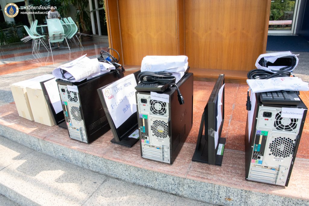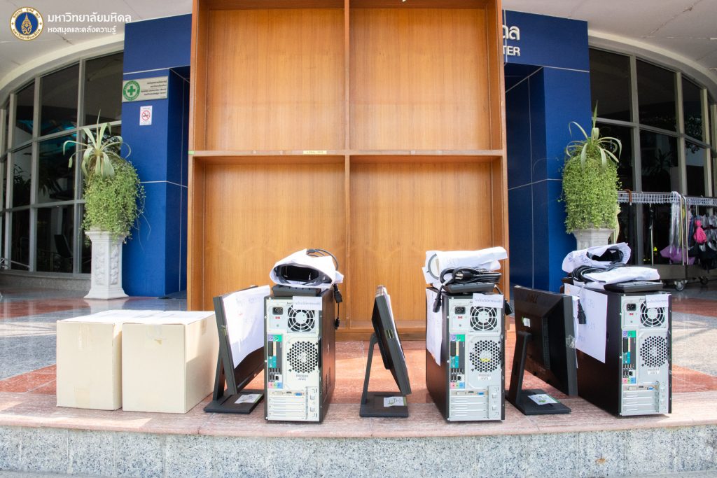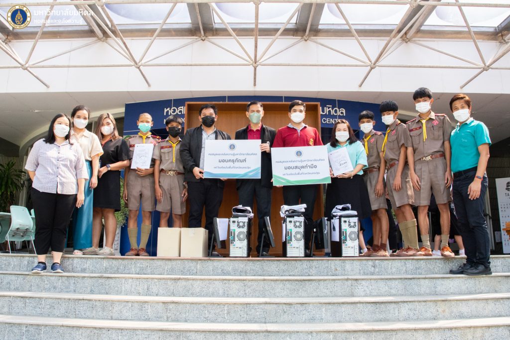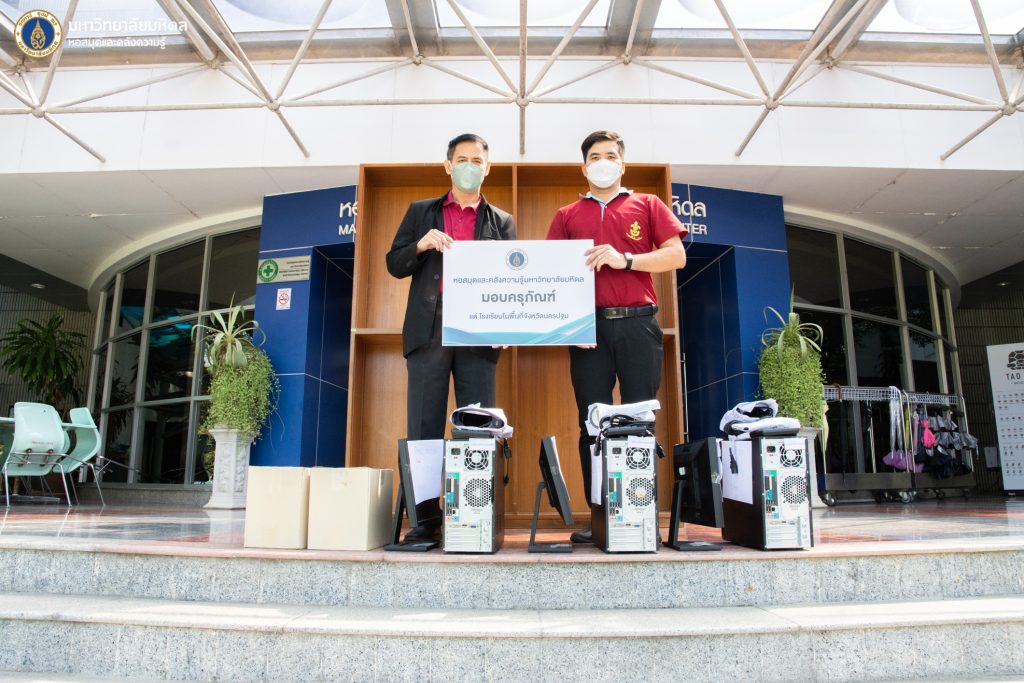 หอสมุดและคลังความรู้มหาวิทยาลัยมหิดล โดย ดร.อภิภู สิทธิภูมิมงคล รองผู้อำนวยการฝ่ายเทคโนโลยีการศึกษาและพันธกิจพิเศษ เป็นประธานส่งมอบอุปกรณ์ทางการศึกษา สมุดทำมือ 4 แบบ และชุดอุปกรณ์คอมพิวเตอร์ ให้กับคุณสิริกร จรดล ครูประจำโรงเรียนวัดโคกพระเจดีย์ ในวันพุธที่ 2 พฤศจิกายน 2565 ที่ผ่านมา ณ อาคารหอสมุดและคลังความรู้มหาวิทยาลัยมหิดล ศาลายา ทั้งนี้เพื่อนำไปใช้ประโยชน์ในการปฏิบัติราชการของโรงเรียนดังกล่าวต่อไป ซึ่งเป็นหนึ่งในโครงการพันธกิจเพื่อสังคม และโครงการหอสมุดและคลังความรู้มหาวิทยาลัยมหิดล ปันสุข ครุภัณฑ์ เพื่อชุมชน