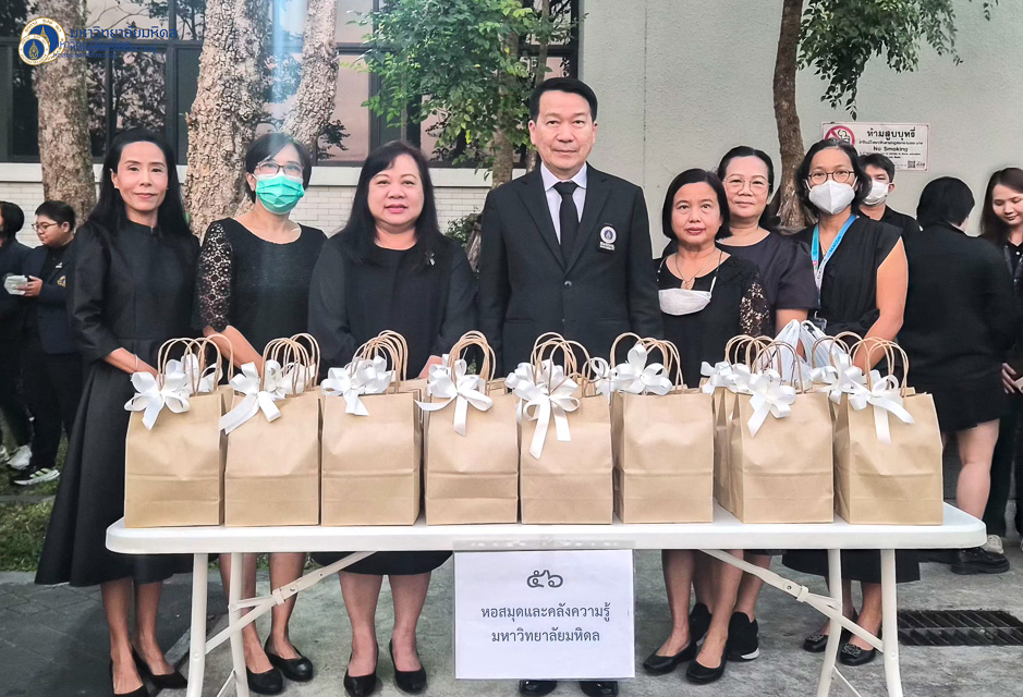 มหาวิทยาลัยมหิดล จัดพิธีบำเพ็ญกุศล 100 วันอุทิศถวายแด่ สมเด็จพระนางเจ้าสิริกิติ์ พระบรมราชินีนาถ พระบรมราชชนนีพันปีหลวง โดยมี ศาสตราจารย์ นายแพทย์ปิยะมิตร ศรีธรา อธิการบดีมหาวิทยาลัยมหิดล เป็นประธานในพิธี โอกาสนี้ หอสมุดและคลังความรู้มหาวิทยาลัยมหิดล นำโดย ผู้ช่วยศาสตราจารย์ ดร.สราวุธ เวชกิจ ผู้อำนวยการหอสมุดและคลังความรู้ฯ และคุณอังคณา อินทรพาณิชย์ รองผู้อำนวยการฝ่ายบริหารและพัฒนาคุณภาพ พร้อมด้วยบุคลากรเข้าร่วมพิธีในครั้งนี้ ในวันศุกร์ที่ 30 มกราคม พ.ศ. 2569 ณ สำนักงานอธิการบดี มหาวิทยาลัยมหิดล ศาลายา โดยพิธีประกอบด้วยการทำบุญตักบาตรพระภิกษุสามเณรจากวัดหทัยนเรศวร์ จำนวน 30 รูป และพิธีบำเพ็ญกุศลภายในอาคารสำนักงานอธิการบดี เพื่อถวายเป็นพระราชกุศล แสดงความจงรักภักดี และน้อมรำลึกถึงพระมหากรุณาธิคุณอันหาที่สุดมิได้