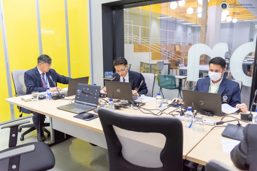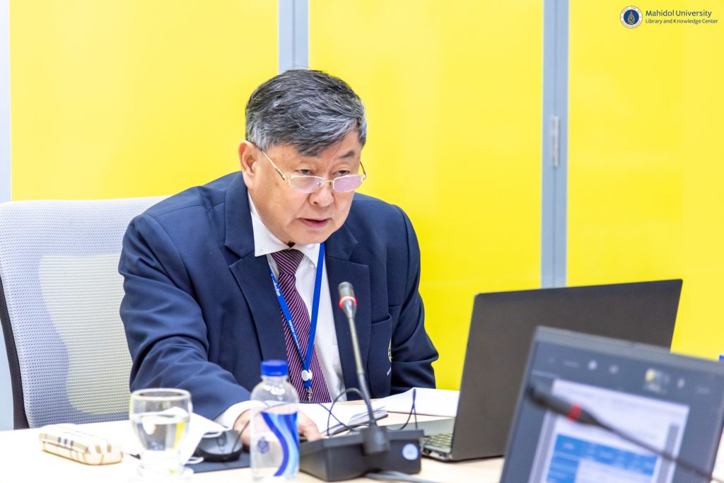 หอสมุดและคลังความรู้มหาวิทยาลัยมหิดล ได้รับเกียรติจาก ศาสตราจารย์ นายแพทย์บรรจง มไหสวริยะ อธิการบดี มหาวิทยาลัยมหิดล ศาสตราจารย์ ดร. นายแพทย์ภัทรชัย กีรติสิน รองอธิการบดีฝ่ายวิจัย และรองศาสตราจารย์ ดร.พลังพล คงเสรี คณบดี คณะวิทยาศาสตร์ พร้อมด้วยหัวหน้าส่วนงานต่าง ๆ ภายในมหาวิทยาลัยมหิดล เข้าร่วมการประชุมพิจารณาบอกรับฐานข้อมูลและวารสารอิเล็กทรอนิกส์ของมหาวิทยาลัยมหิดล ครั้งที่ 2/2566 โดยมีคณะผู้บริหารหอสมุดและคลังความรู้ฯ อาทิ ผู้ช่วยศาสตราจารย์ ดร.นพพล เผ่าสวัสดิ์ ผู้อำนวยการหอสมุดและคลังความรู้ฯ คุณอังคณา อินทรพาณิชย์ รองผู้อำนวยการฝ่ายบริหารและพัฒนาคุณภาพห้องสมุด และคณะกรรมการฯ เข้าร่วมการประชุมในครั้งนี้ด้วย เมื่อวันพฤหัสบดีที่ 30 มีนาคม 2566 ที่ผ่านมา ณ ห้อง The Platoon ชั้น 1 อาคารหอสมุดและคลังความรู้มหาวิทยาลัยมหิดล ศาลายา และผ่านระบบประชุมออนไลน์ Cisco WebEx Meetings