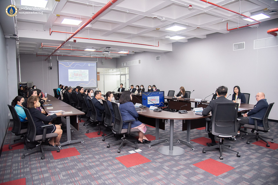 หอสมุดและคลังความรู้มหาวิทยาลัยมหิดล เข้ารับการตรวจประเมินคุณภาพตามเกณฑ์คุณภาพการศึกษาเพื่อการดำเนินการที่เป็นเลิศ (EdPEx) ประจำปี 2568 ในวันที่ 30 พฤษภาคม พ.ศ. 2568 ณ อาคารหอสมุดและคลังความรู้มหาวิทยาลัยมหิดล โดยมี รองศาสตราจารย์ นายแพทย์เอกพันธ์ ครุพงศ์ เป็นประธานคณะกรรมการตรวจประเมินฯ พร้อมด้วยรองศาสตราจารย์ ดร.ธีรนงค์ สกุลศรี และ รองศาสตราจารย์ พญ.สุชาดา อินทวิวัฒน์ เป็นคณะกรรมการตรวจประเมินฯ ในการนี้ ผู้ช่วยศาสตราจารย์ ดร.สราวุธ เวชกิจ ผู้อำนวยการ หอสมุดและคลังความรู้ฯ พร้อมด้วยคณะผู้บริหาร นำเสนอสรุปรายงานผลการดำเนินงานขององค์กร และคณะกรรมการยุทธศาสตร์และประกันคุณภาพ หอสมุดและคลังความรู้มหาวิทยาลัยมหิดล เข้ารับฟังการตรวจประเมินฯ ในครั้งนี้ ซึ่งคณะกรรมการตรวจประเมินฯ ได้นำเสนอผลการพิจารณาตรวจประเมินฯ ในโอกาสนี้ได้รับเกียรติจาก รองศาสตราจารย์ ดร.เภสัชกรสมภพ ประธานธุรารักษ์ รองอธิการบดีฝ่ายแผนกลยุทธ์ พัฒนาคุณภาพ และพันธกิจเพื่อสังคม ร่วมรับฟังการนำเสนอผลการตรวจประเมินฯ และกล่าวชื่นชมการดำเนินงานของหอสมุดและคลังความรู้ฯ พร้อมทั้งมอบแนวทางในการปรับปรุงและพัฒนาการดำเนินงาน ให้สอดคล้องกับแผนยุทธศาสตร์ของหอสมุดและคลังความรู้ฯ ต่อไป
