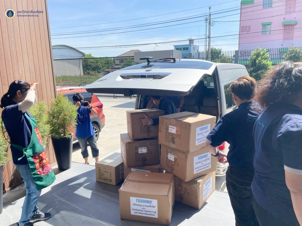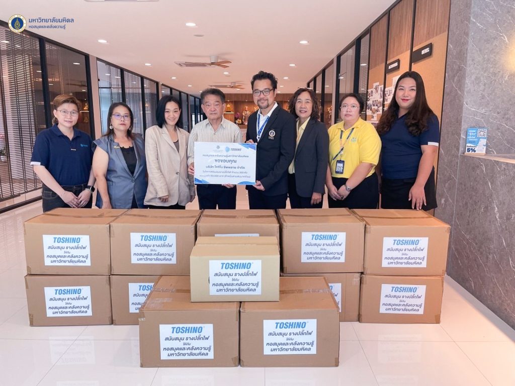 หอสมุดและคลังความรู้มหาวิทยาลัยมหิดล โดย ผู้ช่วยศาสตราจารย์ ดร.สราวุธ เวชกิจ ผู้อำนวยการหอสมุดและคลังความรู้ฯ เข้ารับมอบสิ่งของสนับสนุนจากคุณวสันต์ ตติยจารุวงศ์ ประธานกรรมการบริษัท และคุณวรวลัญช์ ตติยจารุวงศ์ กรรมการผู้จัดการบริษัท โตชิโน ซัพพลาย จำกัด ได้แก่ รางปลั๊กไฟ จำนวน 300 ตัว มูลค่ารวมทั้งสิ้น 53,000 บาท ในวันจันทร์ที่ 30 กันยายน พ.ศ. 2567 โดยมีวัตถุประสงค์เพื่อร่วมสนับสนุนการให้บริการและอำนวยความสะดวกให้กับนักศึกษา อาจารย์ และบุคลากรมหาวิทยาลัยมหิดล ตลอดจนประชาชนทั่วไป ของหอสมุดและคลังความรู้ฯ อย่างมีประสิทธิภาพมากยิ่งขึ้น