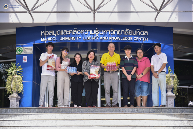 ซึ่งให้ความอนุเคราะห์บริจาคข้าวสาร และน้ำดื่ม โดยคิดเป็นมูลค่าทั้งสิ้น 50,865 บาท และโอกาสนี้ คุณศิวฤกษ์ สุขช้อย ประธานคณะทำงาน CSR เพื่อสังคมไทย: ถวายพระผู้เป็นพ่อแห่งแผ่นดิน ให้ความอนุเคราะห์ดำเนินการขนย้ายสิ่งของบริจาคฯ เพื่อวัตถุประสงค์ในการสนับสนุนโครงการ Mahidol Library Fair 2024 และกิจกรรมต่าง ๆ ของหอสมุดและคลังความรู้ฯ ที่จะดำเนินงานต่อไปในอนาคต