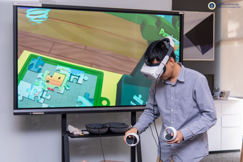 หอสมุดและคลังความรู้มหาวิทยาลัยมหิดล โดย อาจารย์ ดร.เอกชัย วารินศิริรักษ์ รองผู้อำนวยการฝ่ายนวัตกรรมบริการห้องสมุด ให้การต้อนรับนักศึกษาปริญญาโท ภาควิชาวิศวกรรมโยธาและสิ่งแวดล้อม คณะวิศวกรรมศาสตร์ มหาวิทยาลัยมหิดล ในโอกาสเข้าเยี่ยมชมศึกษาดูงานบริการแว่น VR ของหอสมุดและคลังความรู้ฯ เพื่อรับฟังการสนับสนุนการเรียนรู้ตลอดชีวิตด้วยเทคโนโลยีความเป็นจริงเสมือน (Virtual Reality) ในวันศุกร์ที่ 31 มกราคม พ.ศ. 2568 ณ VR Space ชั้น 1 อาคารหอสมุดและคลังความรู้ฯ ศาลายา