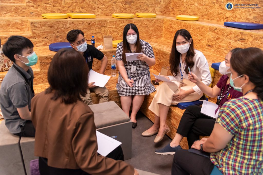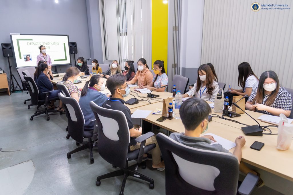หอสมุดและคลังความรู้มหาวิทยาลัยมหิดล โดย ผู้ช่วยศาสตราจารย์ ดร.นพพล เผ่าสวัสดิ์ ผู้อำนวยการหอสมุดและคลังความรู้ฯ เป็นประธานกล่าวเปิดโครงการสัมมนาเชิงปฏิบัติการเพื่อพัฒนาศักยภาพบุคลากร เรื่อง “Design Thinking In R2R and More” โดยมี รองศาสตราจารย์ ดร.ทัศนียา รัตนฤๅทัย นพรัตน์แจ่มจำรัส รองผู้อำนวยการฝ่ายวิจัยและวิชาการ และคุณทินพล หวังเจริญสุข Learning Advisory and Center of Excellent Manager (Agile & Design Thinking) เป็นวิทยากรบรรยายให้ความรู้ในครั้งนี้ เมื่อวันศุกร์ที่ 31 มีนาคม 2566 ที่ผ่านมา ณ Co – MU Space ชั้น 1 อาคารหอสมุดและคลังความรู้มหาวิทยาลัยมหิดล ซึ่งมีบุคลากรหอสมุดและคลังความรู้ฯ และบุคลากรมหาวิทยาลัยมหิดล เข้าร่วมการสัมมนา จำนวน 33 คน โดยมีวัตถุประสงค์เพื่อพัฒนาทักษะกระบวนการคิดเชิงออกแบบ และต่อยอดสู่กระบวนการทำผลงานของบุคลากรมหาวิทยาลัยมหิดลได้อย่างมีประสิทธิภาพ
