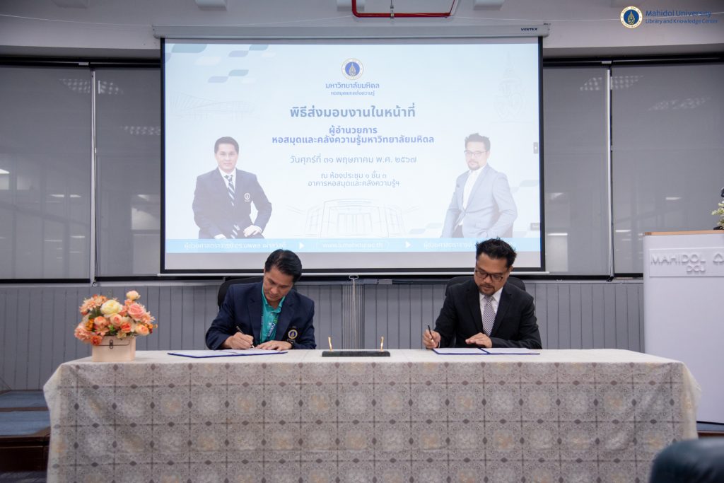 ในวันศุกร์ที่ 31 พฤษภาคม 2567 หอสมุดและคลังความรู้มหาวิทยาลัยมหิดล จัดพิธีส่งมอบงานในหน้าที่ผู้อำนวยการหอสมุดและคลังความรู้มหาวิทยาลัยมหิดล โอกาสนี้