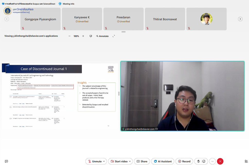 หอสมุดและคลังความรู้มหาวิทยาลัยมหิดล โดย งานพัฒนาทรัพยากรวารสาร จัดการอบรมในหัวข้อ “การเสริมสร้างงานวิจัยด้วย Scopus และ ScienceDirect”