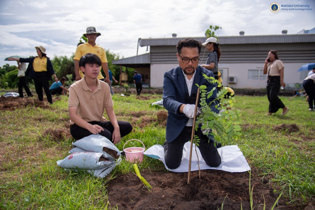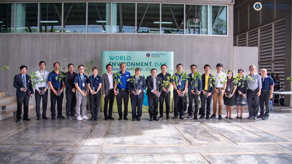 มหาวิทยาลัยมหิดล กำหนดจัดกิจกรรมปลูกต้นไม้ เนื่องในวันสิ่งแวดล้อมโลก ประจำปี 2567 โดยมี ศาสตราจารย์ นายแพทย์บรรจง มไหสวริยะ อธิการบดีมหาวิทยาลัยมหิดล เป็นประธานในพิธี ในวันพุธที่ 5 มิถุนายน 2567 ณ ลานด้านหน้าโครงการจัดตั้งศูนย์พัฒนาอุตสาหกรรมชีวภาพ มหาวิทยาลัยมหิดล ศาลายา โอกาสนี้ ผู้ช่วยศาสตราจารย์ ดร.สราวุธ เวชกิจ ผู้อำนวยการหอสมุดและคลังความรู้มหาวิทยาลัยมหิดล ร่วมปลูกต้นจามจุรี ต้นชมพูพันธุ์ทิพย์ ต้นสาธร ต้นชงโค ต้นล่ำซำ และต้นกระพี้จั่น จำนวน 74 ต้น เพื่อเป็นสัญลักษณ์ในวันสิ่งแวดล้อมโลก ประจำปี 2567 และเพื่อเพิ่มพื้นที่สีเขียวและเป็นแหล่งดูดซับก๊าซคาร์บอนไดออกไซด์ ภายในมหาวิทยาลัยมหิดล ตลอดจนสนับสนุนการดำเนินการไปสู่เป้าหมายการปล่อยก๊าซเรือนกระจกสุทธิเป็นศูนย์ (Net Zero Emission) ภายในปี พ.ศ. 2573 ของมหาวิทยาลัยมหิดล