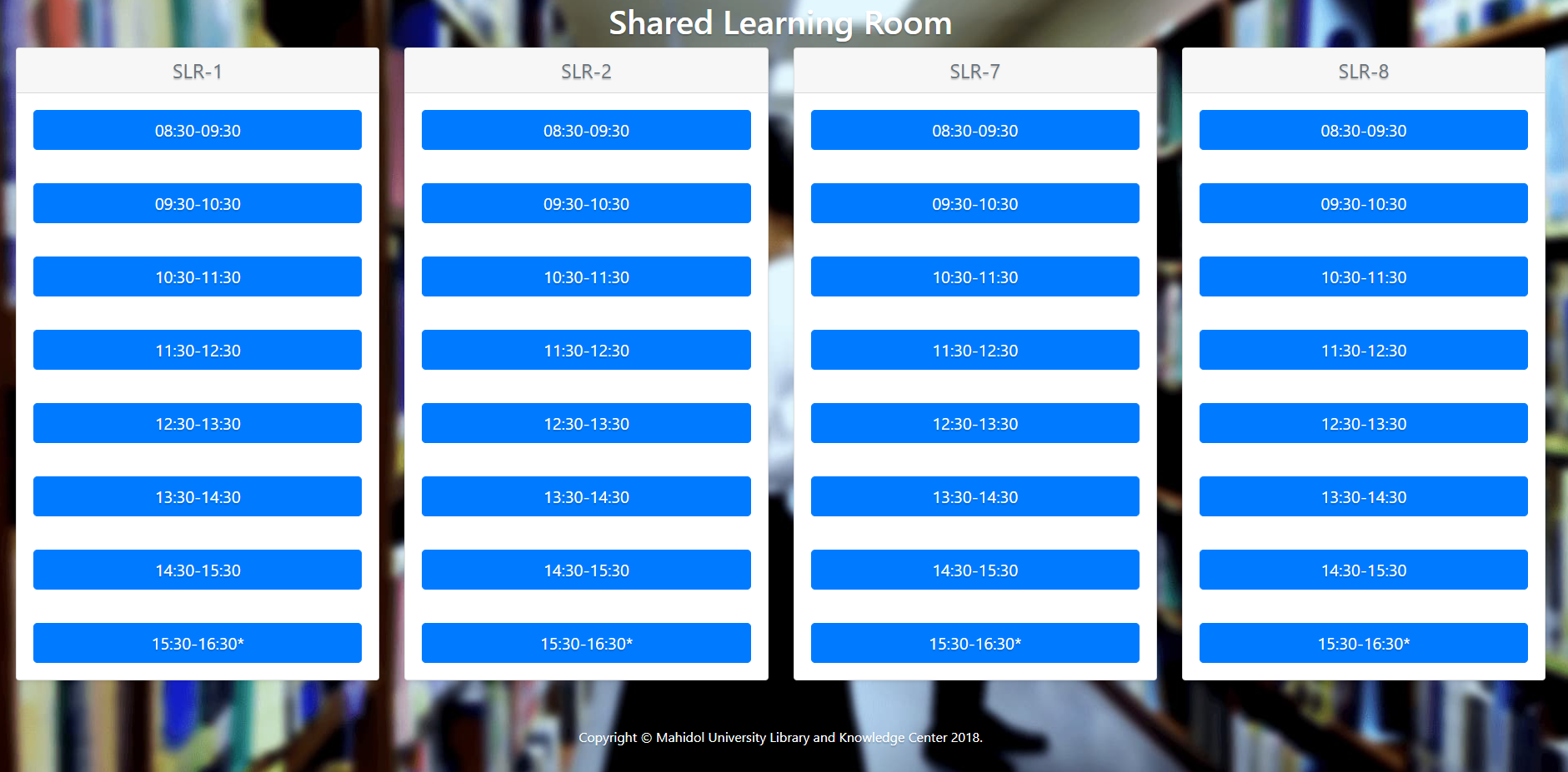 2. คลิกเลือกปุ่มพื้นที่ที่ต้องการใช้บริการ เพื่อแสดงเวลาการจองห้อง